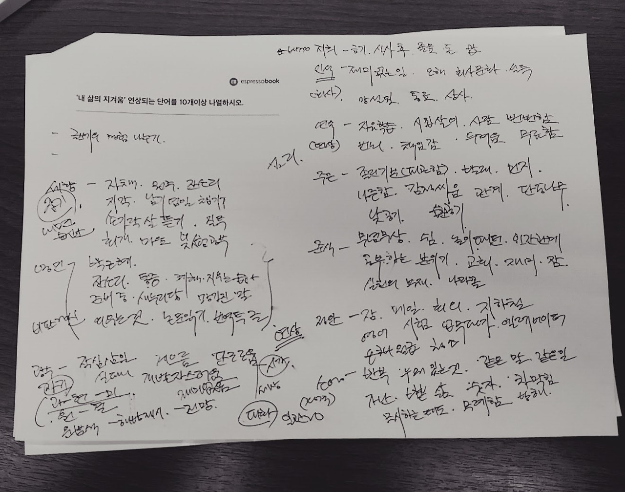 사람들의 자유 연상과 발표를 듣고 한 메모들