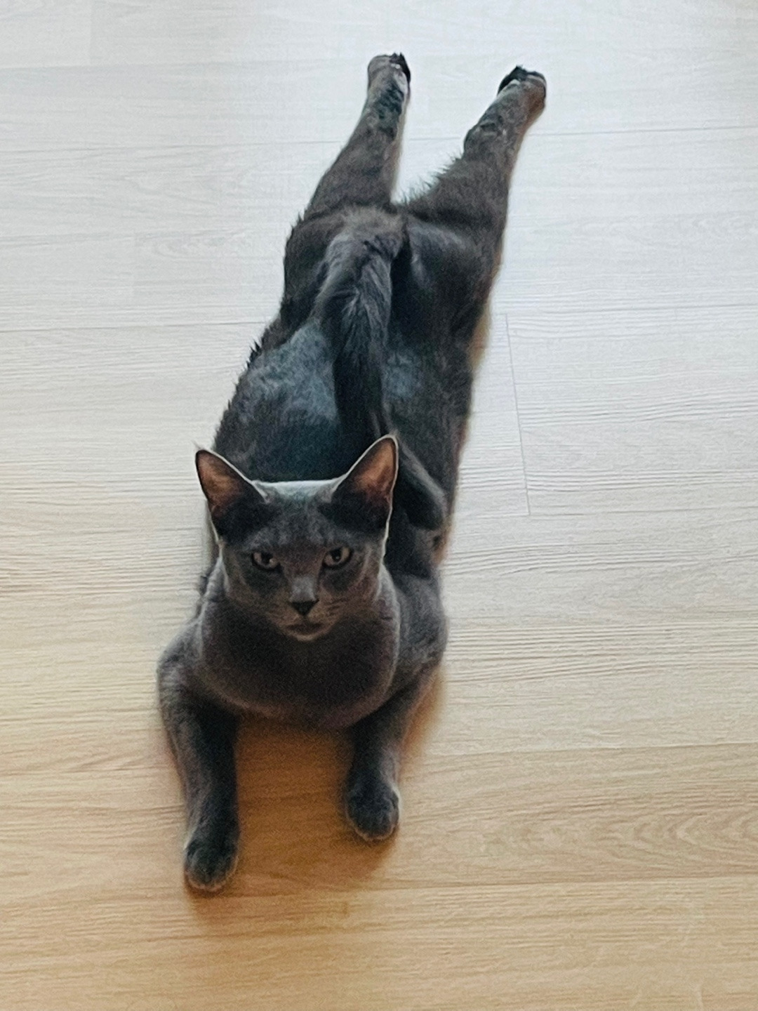 물론 들어오면 또 마음이 약해져. 내가 선풍기 앞에서 널브러져 있으니까 집사들이 “까미 너무 더웠지?” 하고 말하더라. 그 한마디에... 참. 나란 고양이, 마음이 또 스르륵 풀려버린다니까. 그러고는 냉기 뿜뿜한 에어컨 바람 속에서 몸을 쭉 펴고 누웠지. 이제 살았다 싶었어.