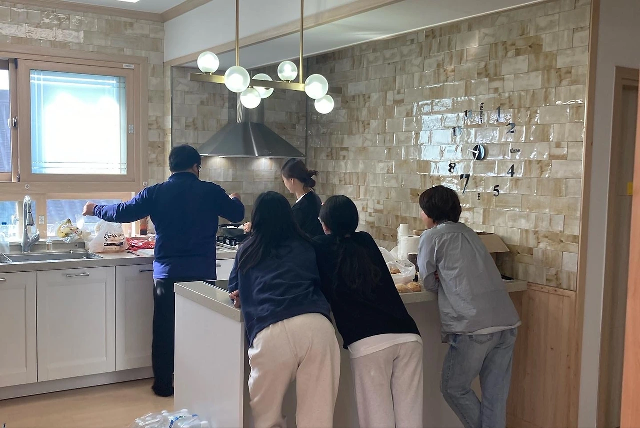 어떤이는 숙소 장소를 섬기고, 어떤이는 국자를, 어떤이는 차를, 어떤이는 오이지를, 어떤이는 간식을, 어떤이는 집에있는 매트까지 가져왔다.