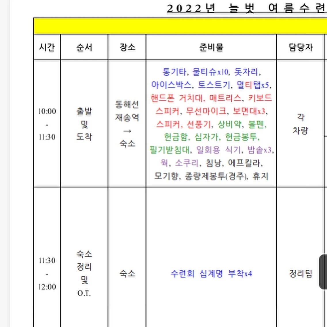 2022년 수련회 이틀전