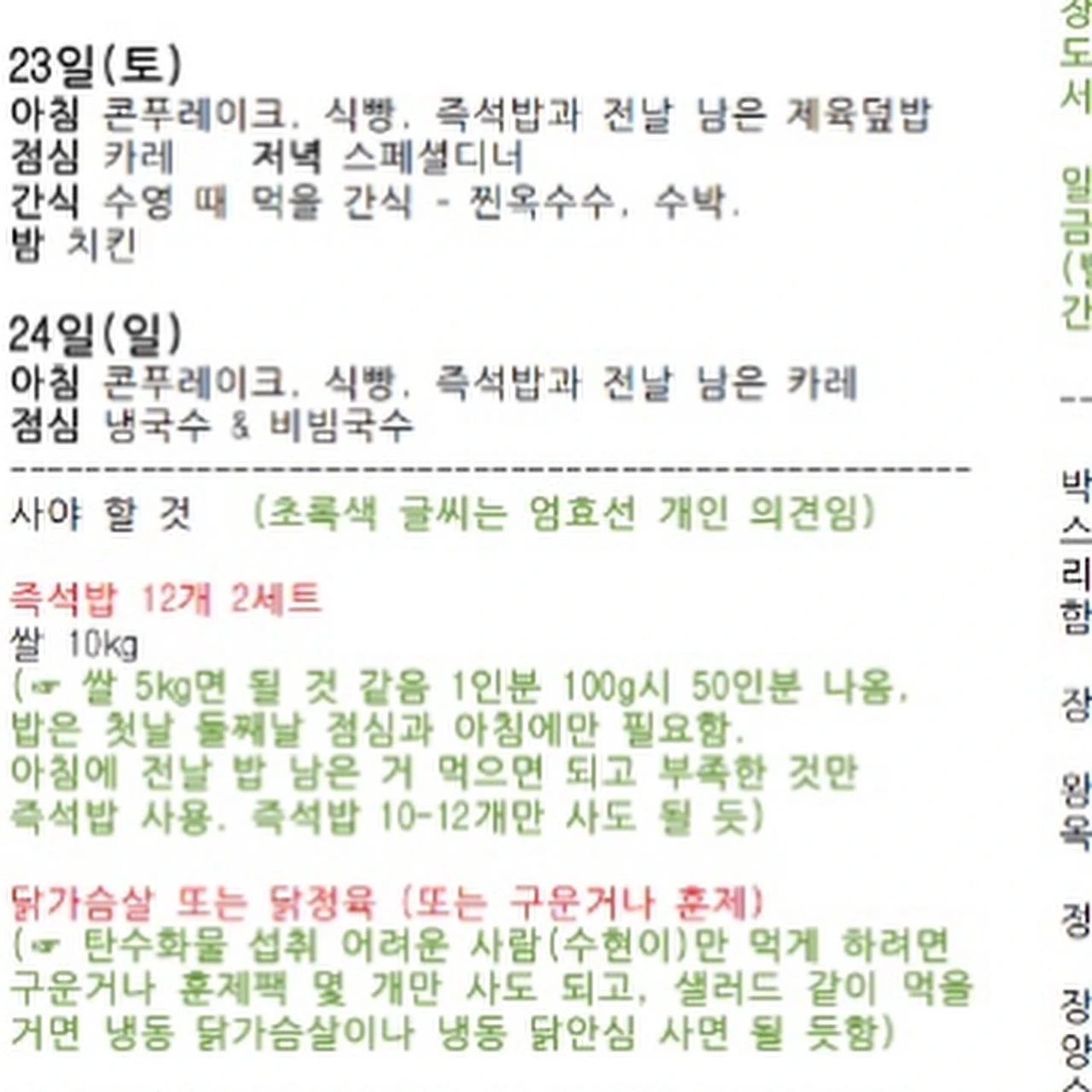 오늘은 전도사님, 아내, 집사님과 함께 장을 봤고, 한 자매는 수련회비를 모두 다 받아 전달해 주었고, 한 집사님은 가정에서 벌써부터 밑반찬을 준비하고 계신다. 미리 숙소를 몇번이나 가서 주위를 체크하고 사진을 찍어서 보내주는 동역자도 있다. 이번에 어쩔수 없는 상황에 참석하지 못한 청년은 물 2리터 짜리 24개와 포카리스웨트 그리고 컵라면을 숙소로 이미 보낸 상태이다.이런 마음이 담긴 헌신들이 하나 하나 모여 수련회를 만들어가고 있다.