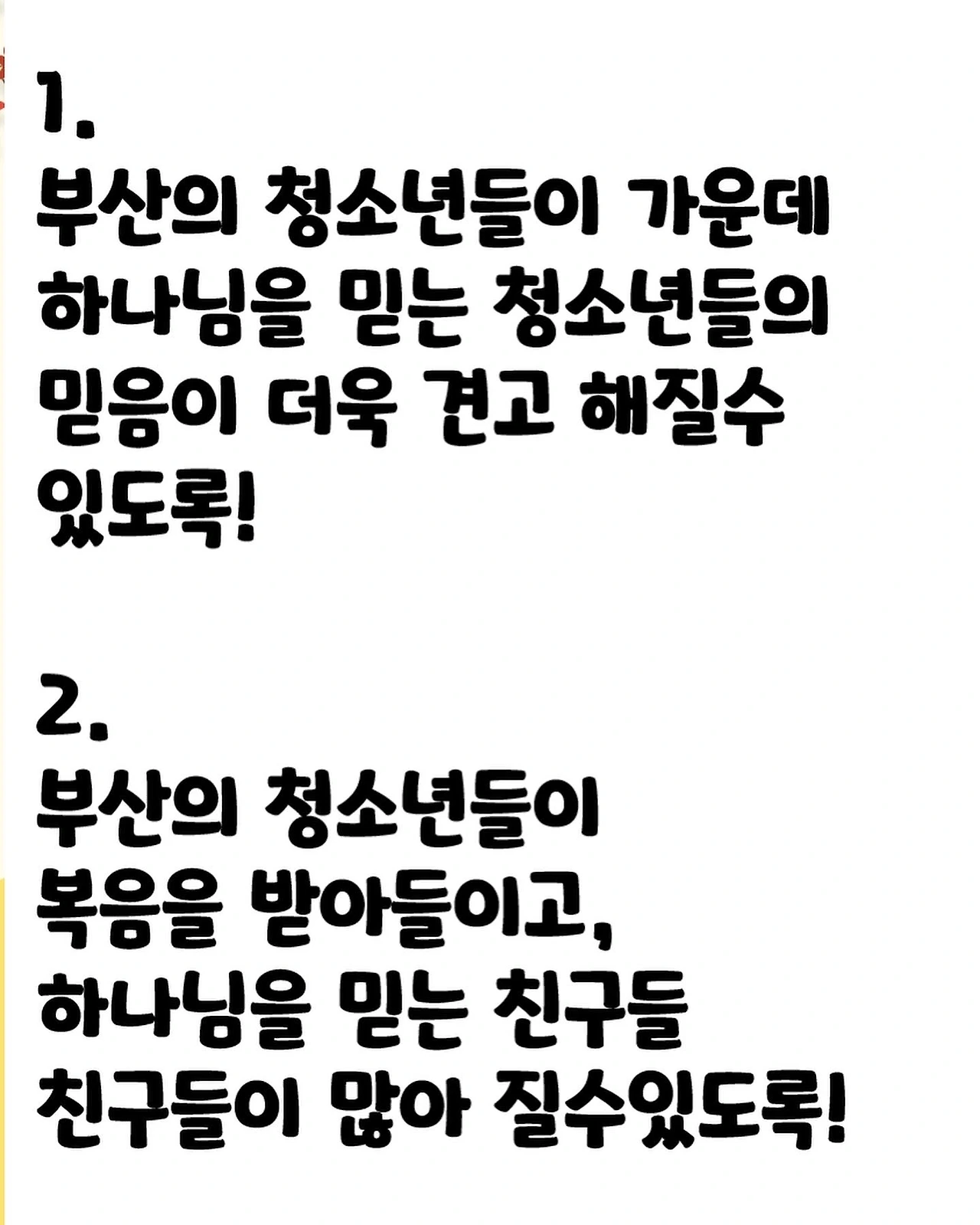 청소년들을 위해 기도합니다.