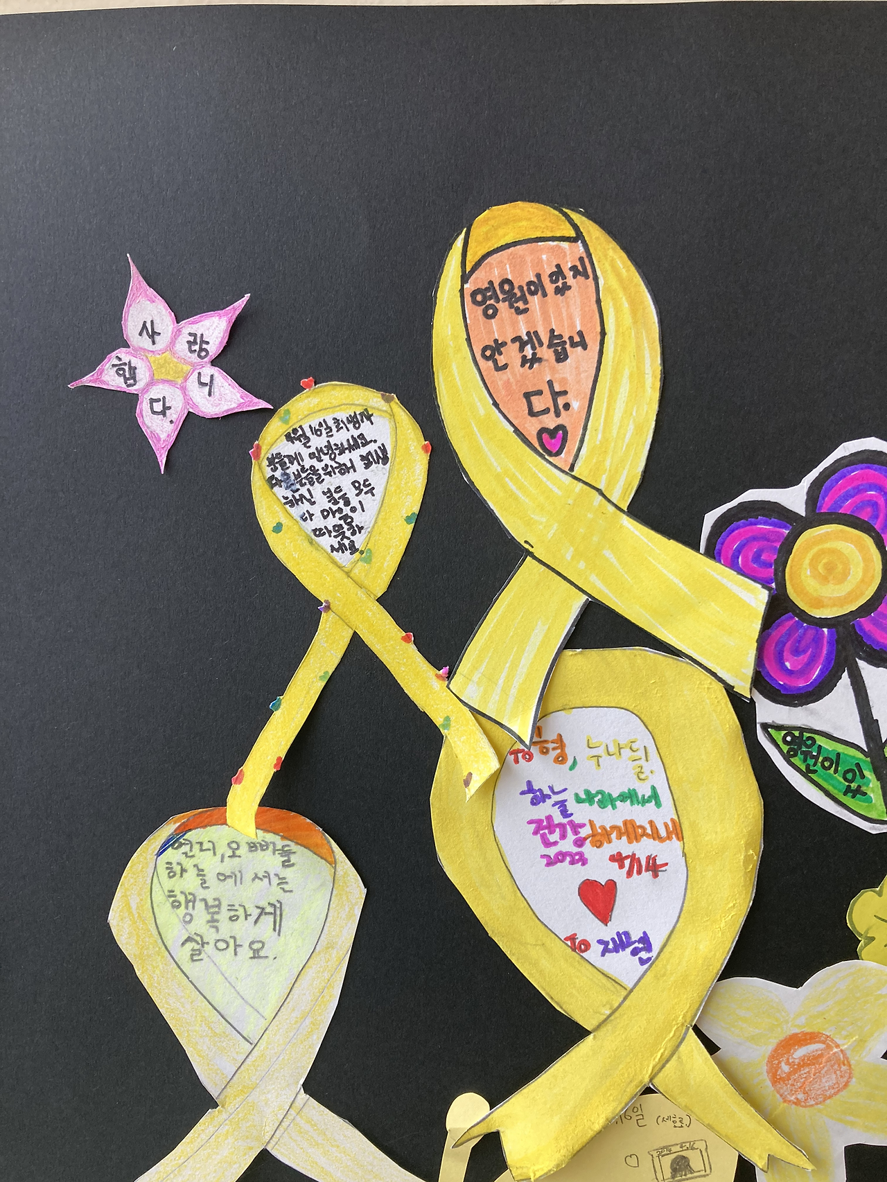 아이들의 리본 하나 하나에 담긴 메시지가 가슴을 흔들었다.