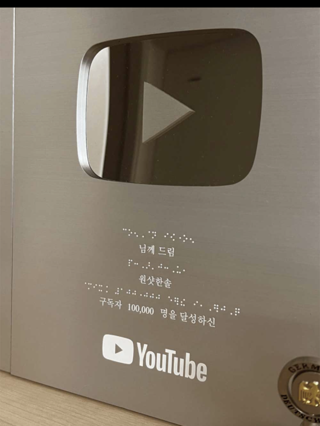 그 과정에서 외국에는 이미 실버버튼을 받은 시각장애인 유튜버가 몇 명 있다는 걸 알게 됐고 그중 한 명은 점자로 이름이 새겨진 실버버튼을 받았다고 했다. 나는 유튜브에 점자 실버버튼 제작을 해줄 수 있는지 묻는 메일을 보냈다. 이름뿐 아니라 모든 내용을 점자로 새겨줄 수 있냐고 썼다.