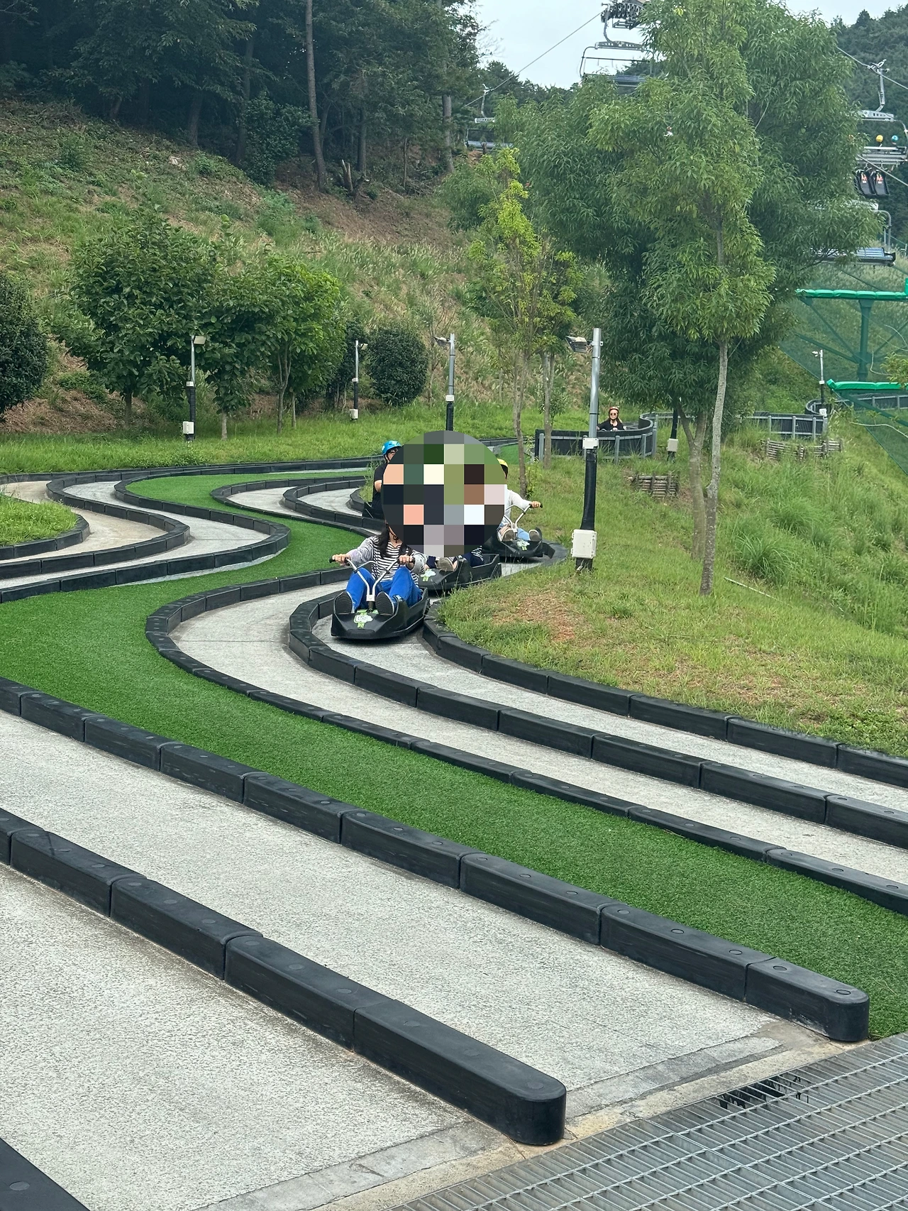 점심시간이 되기 전에 루지안내소에 갔더니, 티켓 종류가 여러 가지였다. 이름은 기억이 안나지만, 한번 타는 것보다는 패키지가 저렴했다. 그러니 경험자들이 한번만 타고싶지 않을 거라며 패키지를 구매했다. 높은 곳에 올라가 루지를 타고 내려오는 길은 코스마다 조금 다른 경치를 볼 수 있지만, 바다가 보이는 코스는 너무 아름다웠다. 속도를 조절할 수 있어서 생각보다 무섭지도 않았다. 같이 출발한 큰 아이와 작은 아이는 마지막 구간에서 뒤에서 오던 큰 아이가 작은 아이들 들이받아서 주의를 받기도 했다. 속도가 없는 구간이라 다행이었다. 여유롭게 천천히 내려오는 나를 기다리다 가족들이 사진을 찍어주었다. 지난 번 통영 여행에서의 긴장감이 싹 사라졌다. 놀이기구가 이렇게 즐거운 거였어?