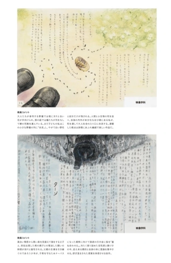 선생님은 일본미술대학의 입시에 대해 전반적인 설명을 해주셨고, 아이가 지망하는 학교를 물어보셨다. 아이가 마음에 둔 학교는 두 개였고, 동경에 있다. 선생님은 어느 학교 무슨 전공을 지망할 것인지 미리 정하고 준비해야 한다고 했다. 각 학교 홈페이지에 매년 입시합격작들 중 우수작을 제공해 준다. 선생님은 인쇄한 책자를 보여주셨다. 작품을 보니 과연 전공을 미리 정하지 않으면 아주 곤란하겠다 싶었다. 전공마다의 입시 출제 문제가 확연히 달라서 각 전공에서 원하는 학생의 특징이 무엇인지 알 수 있었다. 선생님은 아이의 이전 작품들을 보면서 화풍과 스킬에 맞는 몇 가지 전공을 추천해 주셨다. 그런데, 아이가 눈을 떼지 못하는 작품들이 있었다. 그것은 마치 애니메이션의 한 장면을 보는 듯했다.