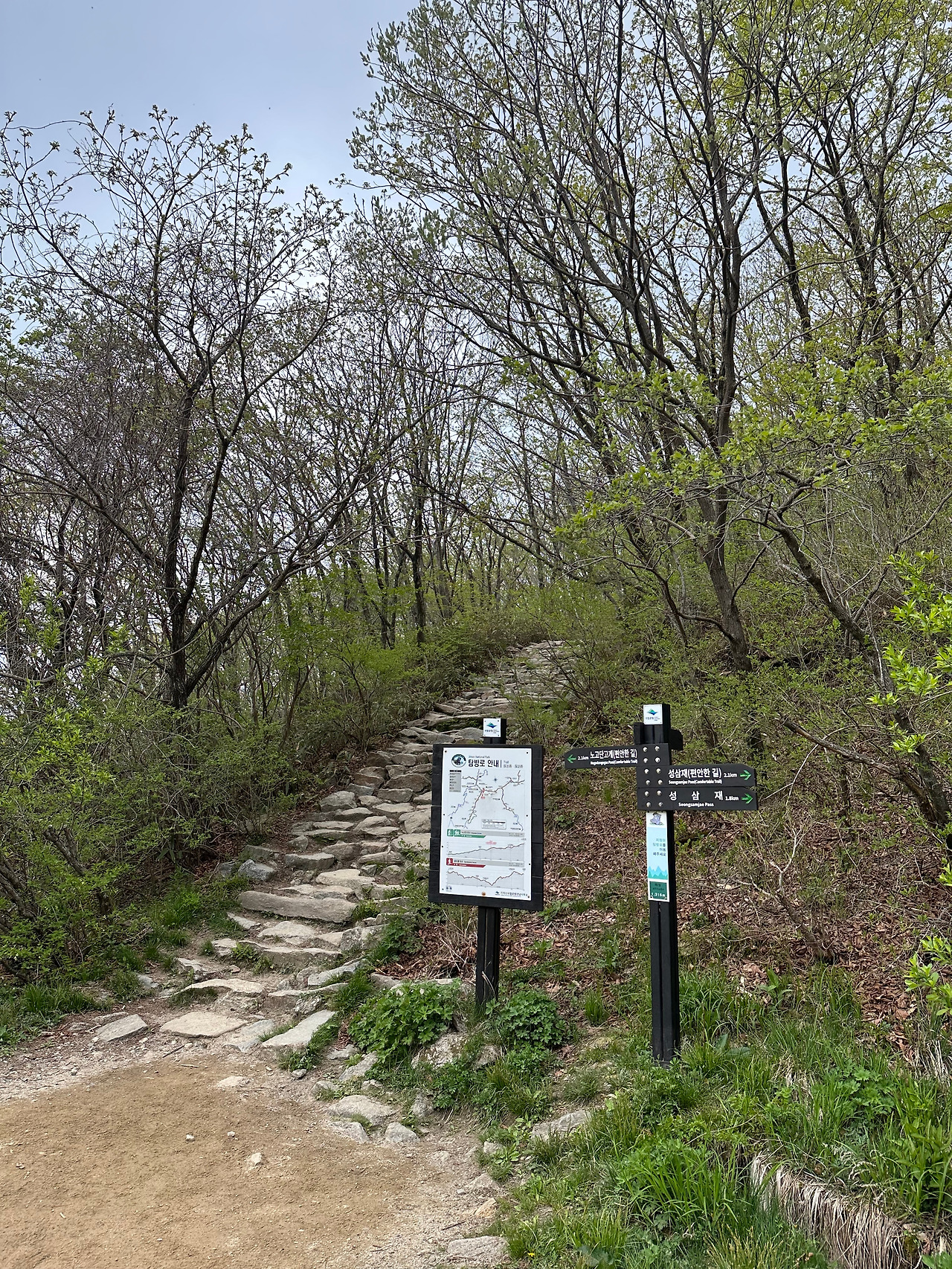 성삼재에 내린 것만으로도 기분이 한층 고조되었다. 이야기도 듣고 사진으로도 보긴 했지만, 반듯하게 닦인 노고단 오르는 길은 탐방로가 정말 잘 정비되어 있다. 자연 속에 들어간 기분은 너무 좋았지만, 이게 등산이 맞는 건가란 생각을 계속했다. 넓고 완만하게 잘 닦인 탐방로는 걷기에 정말 좋았고, 등산화는 필요하지 않았다. 노고단고개에서 완만한 길과 계단길을 선택할 수 있어서 좀 등산맛을 내려면 계단길을 이용하면 된다. 노고단대피소에서 노고단정상까지 가는 길은 탐방예약을 해야 한다. 국립공원은 하루 관람객 인원제한을 하는데, 예약을 하지 않아도 인원이 남아있으면 현장에서도 입장은 가능하다. 우리가 노고단고개에 도착했을 때는 탐방인원이 가득 찬 것은 아니었지만, 이미 시간이 늦은 오후였다. 지킴이분께서 시간 내에 돌아올 수 있는 사람은 입장시켜 주었지만, 우리는 거기서 만족하기로 했다. 내 어린 기억 속에 있던 좁고 가파른 등반길은 아니었지만, 숲길을 걷는 것은 생각을 좀 정리할 수 있는 여유를 주었다.