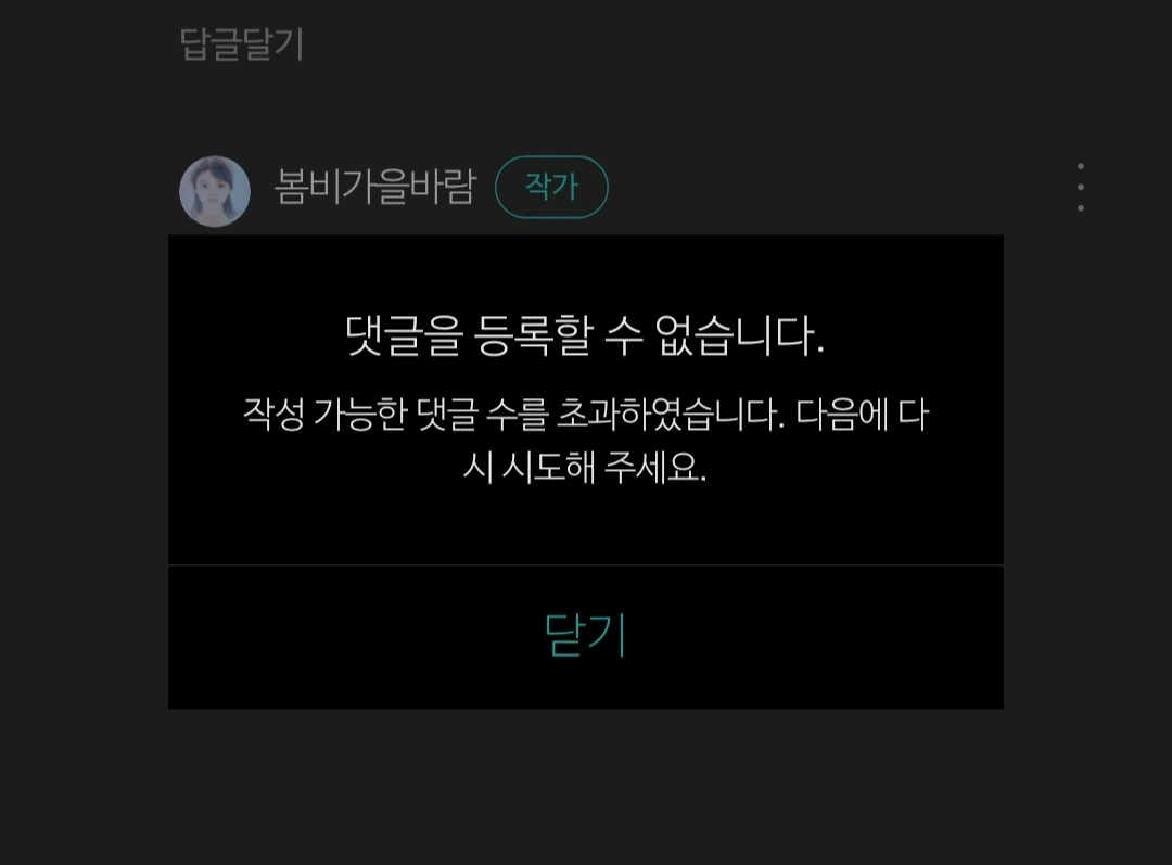 에 비해 턱없이 부족한 것 같아 댓글을 다는데 이런 문구가 뜨네요.