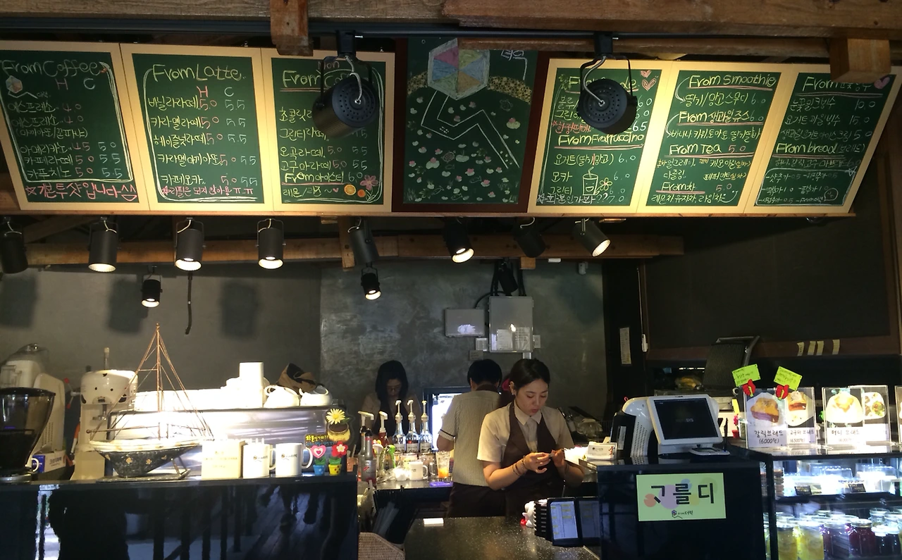 메뉴는 굉장히 다양한 편. 이상하게 배가 고파서 평소와 다르게 허니버터브레드도 주문해봤다. 아이스 아메리카노와 자몽에이드 선택. 가격은 그냥 그냥 무난하다. 샌드위치 같은 먹을거리도 제법 판다.