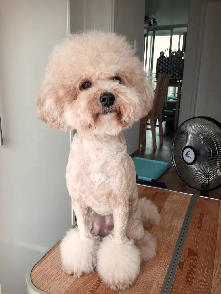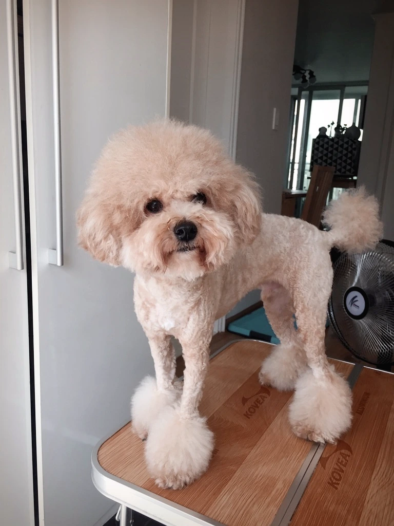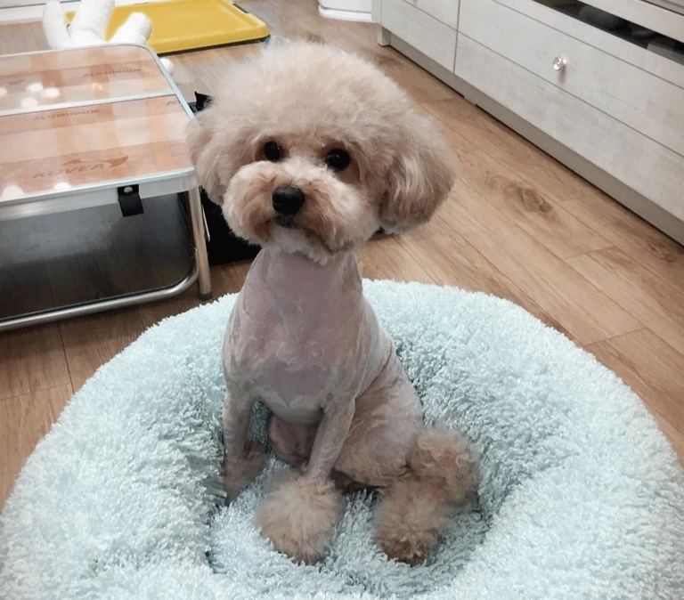 사람도 강아지도 돈을 들이고 가꾸기에 따라 얼마나 달라지는지를 빈이를 보며 절실히 느끼곤 한다. 미용이 없어도 빈이는 푸들 치고 굉장히 예쁜 편인데(적어도 팔불출 엄마의 눈에는) 미용을 하고 오면 "아니 이게 누구야, 정말 빈이니?" 소리가 나올 만큼, 끌어안고 연달아 뽀뽀를 할 만큼 예뻐진다. 다만 전신 미용을 하면 45,000원, 한 달 반에서 두 달에 한 번은 미용을 해야 하는데 가격이 부담스러운 게 사실이다. 게다가 항상 테디베어컷을 하다 보니 조금만 놔둘라치면 털이 눈을 가려서 빈이도 많이 불편해 보이니 비용이 부담돼도 자꾸 미용을 할 수밖에 없다.