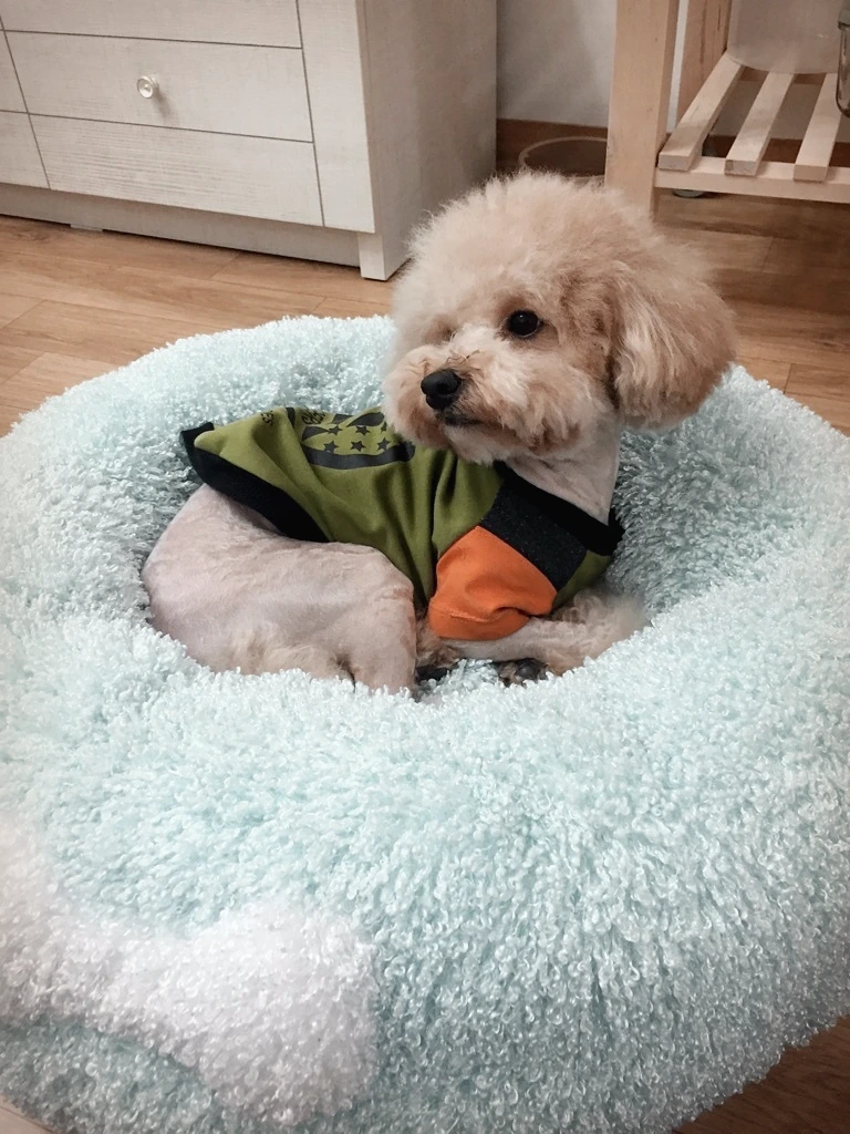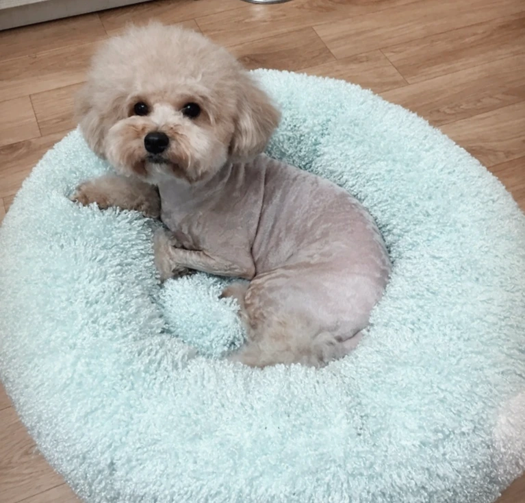 몸이랑 다리를 가위로 다듬어야 해서 이번 미용은 평소보다도 시간이 더 많이 걸렸다. 1시간 30분을 넘긴 터라 나도 빈이도 많이 지쳤다. 미용이 끝나고 빈이가 방석에 누운 모습이 얼마나 짠하던지. 엄청 어설펐지만, 그래도 전보다 얼굴이 동글동글하고 꽤 털이 짧게 다듬어진 것 같아서 다행이다 싶다. :)