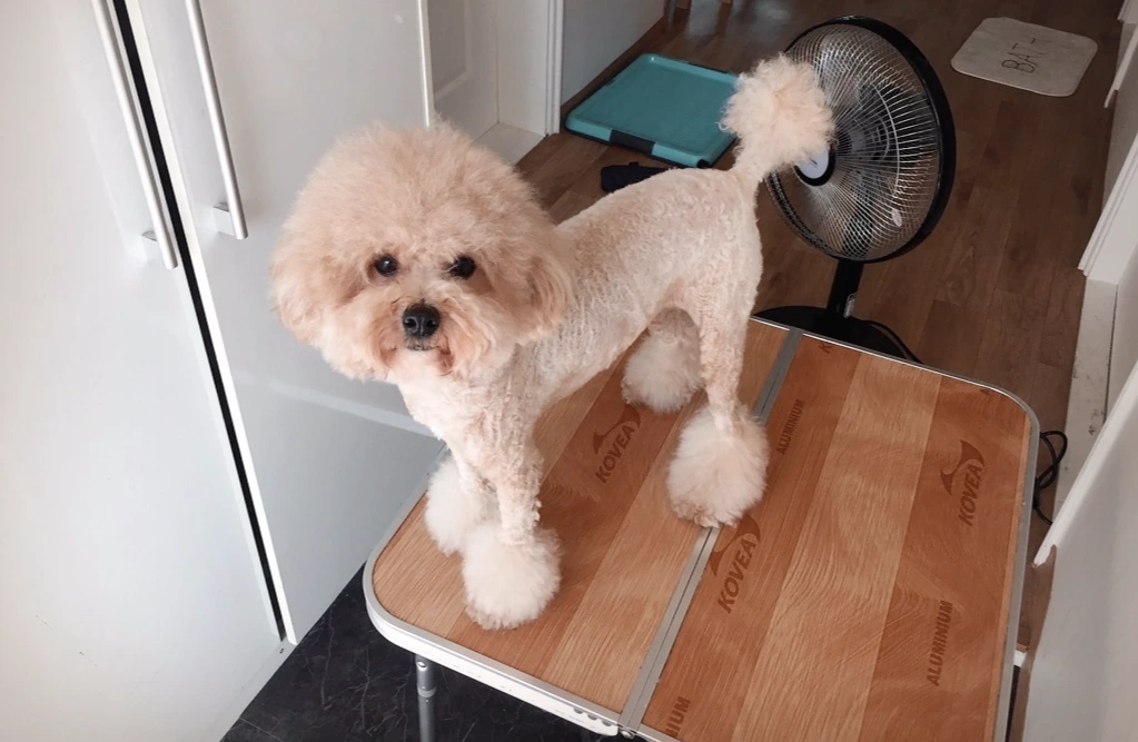 셀프 미용을 할 때, 강아지를 높은 곳에 올려두면 높이 때문에 움직임이 덜하다고 한다. 첫 미용 때는 높은 곳이 아일랜드 식탁 밖에 생각나지 않아 거기서 시도했는데, 주방이며 거실에 온통 털이 날리고 빈이가 아직 어려서인지 도통 가만있질 못해서 서로 고생이었다. 그렇게 셀프 미용을 포기했었는데 10만 원 가까이 주고 산 애견미용기도 아깝고, 분당엔 예쁘게 하는 미용샵을 찾기 힘들어 다시 시도해보기로 했다.