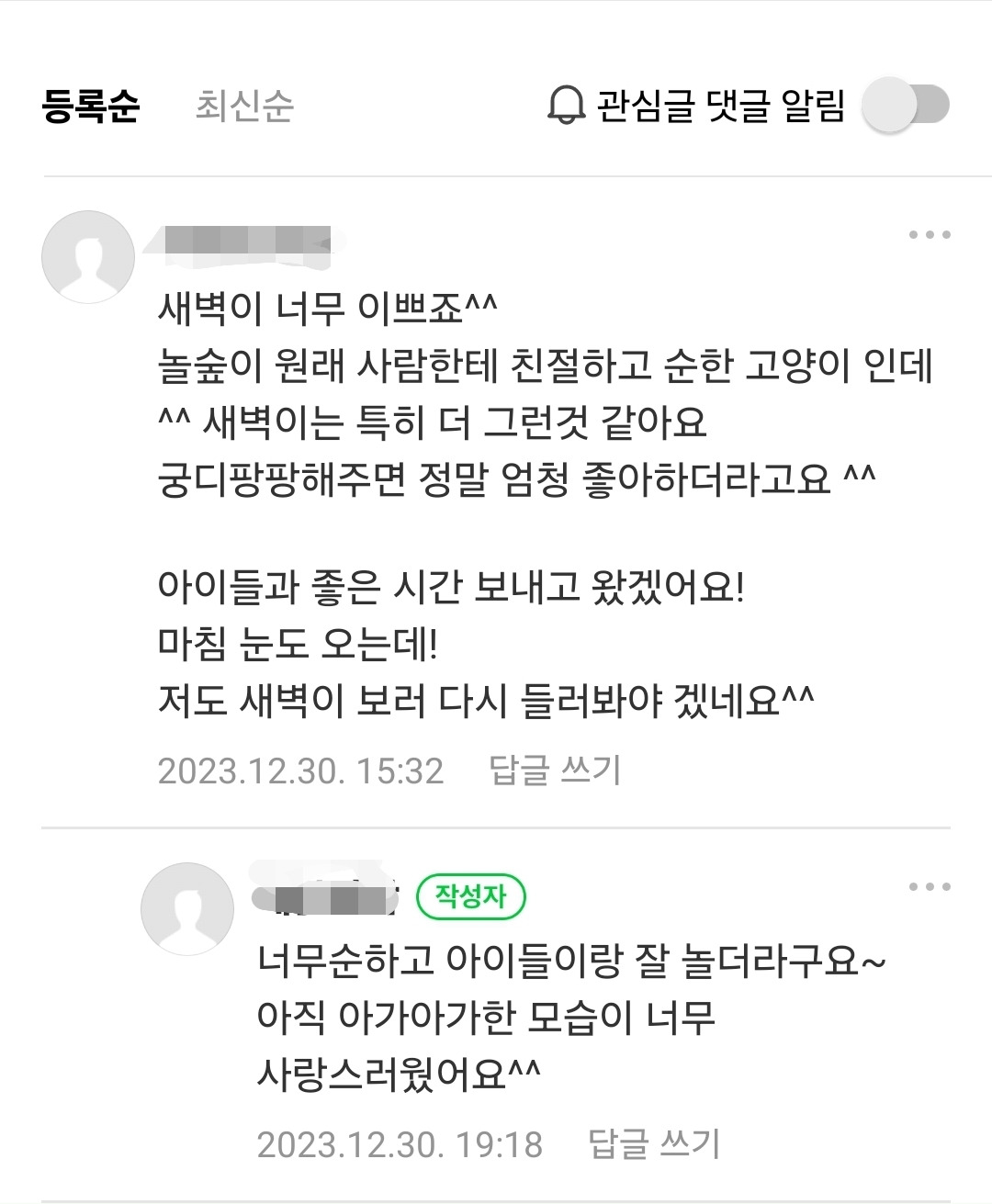 "새벽이가 지금은 혼자 있고 싶은가 봐. ㅇㅇ이도 혼자 있고 싶을 때가 있지?