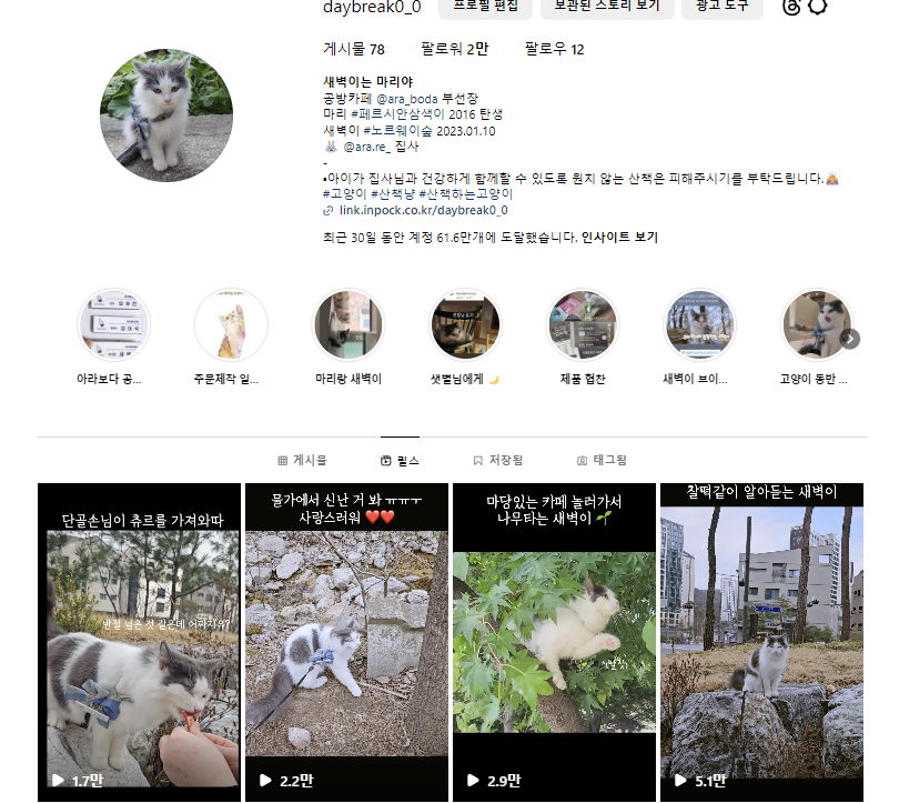 일주일에 4개에서 많게는 6개의 영상을 편집해서 올리면서, 점점 팔로워와 구독자가 늘었고 현재 인스타그램은 2만 팔로워, 유튜브는 1.2만 구독자가 생겼다.