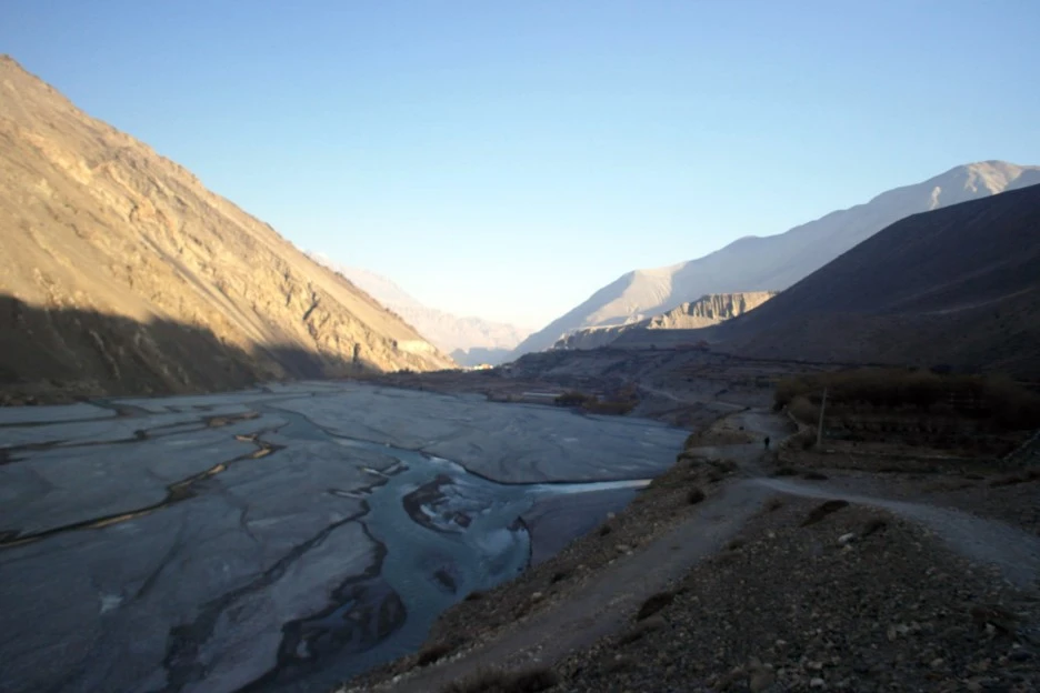 까끄베니에서 좀솜까지의 길은 오르막도 내리막도 거의 없는 평탄한 길이었다. 갈리칸다키 협곡을 따라 절렁절렁 산책하듯이 내려가다 보면 좀솜이 나왔다. 길이 편안한 데다 오전에는 바람도 없어 여유롭게 한담을 나누며 걸었다. 더불어 많이 웃었다. 그렇게 좀솜에 도착하여 시골 양반 서울 구경하듯 두리번거리면서 좀솜의 번화가를 쏘다녔는데, 넋이 나갈 만큼 아름다운 여인이 우리 앞으로 지나갔다. 얼마나 아름다웠으면 야크 치즈 외에는 도무지 흥분하지 않던 재민이도 탄식을 내질렀다.