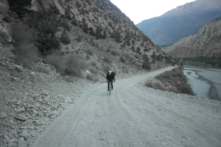 여러 마을을 거쳐 따또파니까지 가는 게 오늘의 목표. 도보로는 2,3일은 잡아야 할 만큼 긴데, 대부분 내리막길이라 자전거로는 하루 만에 갈 수 있다. 사실, 조금 더 설렁설렁 간다면 하루 더 여유 있게 탈 수도 있었지만, 대여 비용이 만만치 않아 하루 만에 가는 걸로 결정했다. 이왕 이리된 거, ‘스릴’만큼은 끝내주게 즐기리라 다짐하면서 출발! 우리가 가는 칸다가르키 협곡은 내려가는 쪽의 왼편에는 안나푸르나가 오른편에는 다울라기리 산군이 펼쳐져 있지만…핸들을 손에 꽉 쥐고 앞만 보고 내달리느냐 제대로 쳐다보지도 않았다. 자칫 한눈이라도 팔다가 삐끗하면 낭떠러지로 떨어져 죽을 것 같았다. 그래도, 다울라기리 쪽은 최대한 쳐다보려 노력하며 자전거를 탔다.