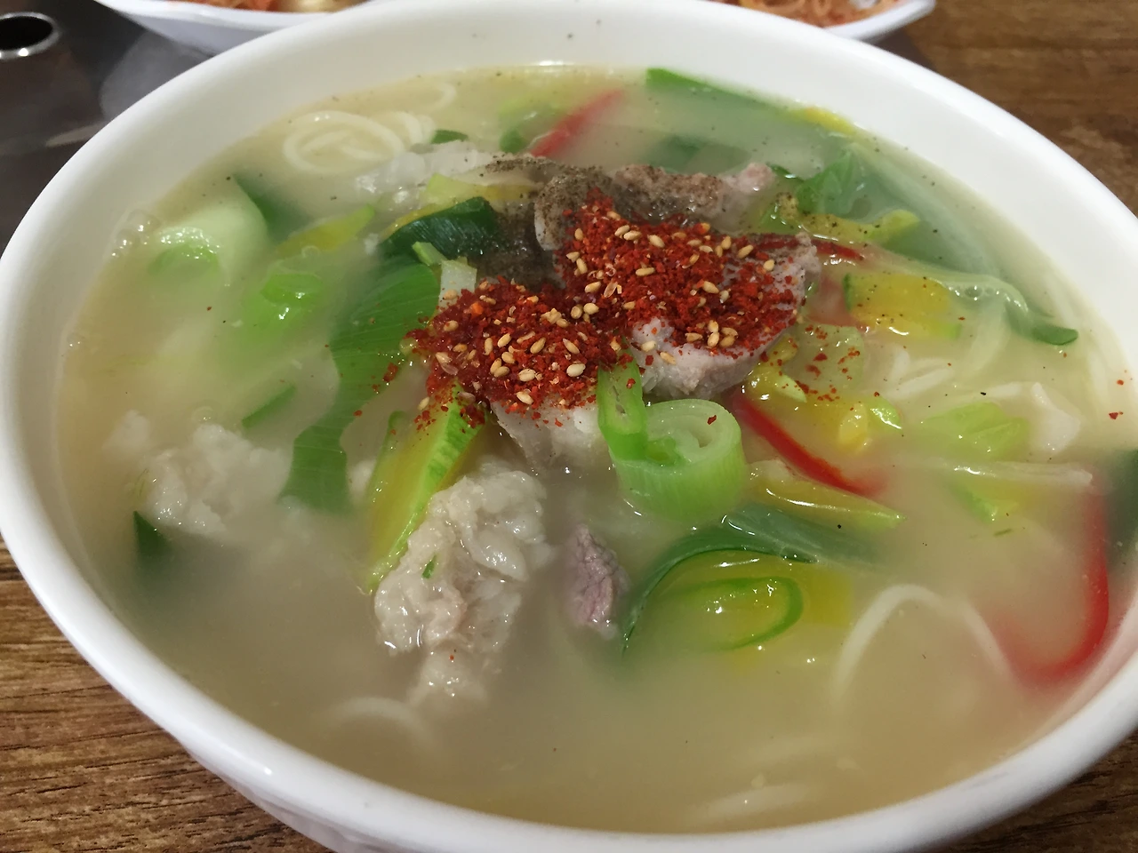 배추를 고명으로 사용하여 시원한 맛이 있다. 후추가 제법 들어가 제주도 식당이라는 느낌을 강하게 받는다. 고기는 다릿고기를 이용한 것으로 생각되며 국물과 면의 밸런스도 평균 이상이었다. 고기가 더 두툼했으면 좋았을 것 같지만 이 부분은 취향 차이로 보인다.