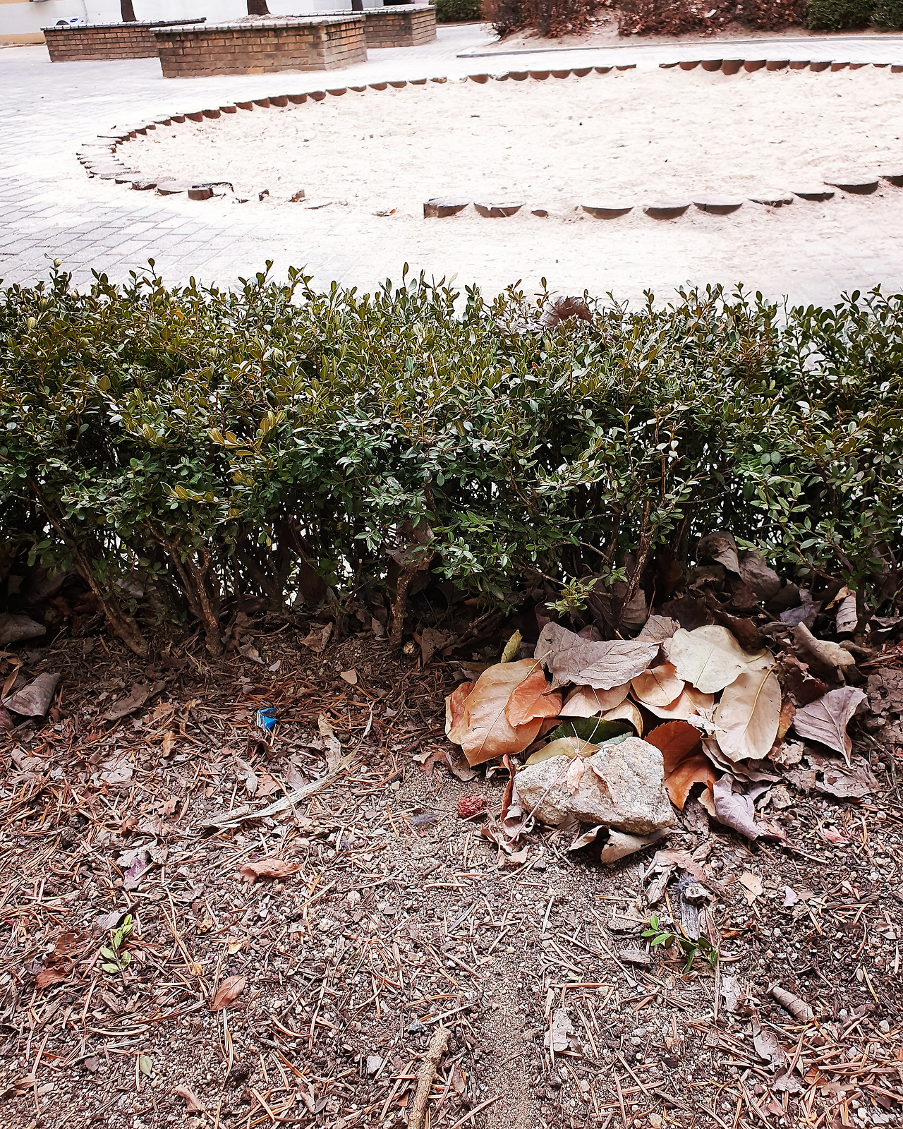 풀까로 옮겨서 나뭇잎 덮어줬어요.