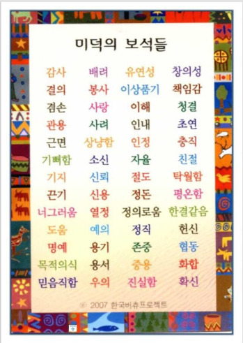 자, 나란 사람을 다시 제대로 보는 거예요. 52가지 미덕은 곧 내 안의 힘이에요. 그중에 2가지로 나누어 찾아주세요. 내가 빛냈던 것과 필요한 것으로 나눠 보는 거예요. 저는 무엇을 빛냈을까요? 저의 기분과 욕구를 인정받고 싶은 마음이 컸고, 쟁취될 때까지 의지를 굽히지 않았어요. 소신과 결의를 무척이나 빛냈어요. 필요한 건 뭘까요? 나 혼자 사는 곳이 아니었으니 부모님 상황과 마음을 조금 생각해 보는 이해가 필요했어요. 제 마음 몰라준다고 삐져있거나 방에 혼자 들어가 있는 것보다 나의 감정을 말하고, 제가 바라는 것을 얻기 위해 기지를 발휘했으면 좋았을 것 같아요.