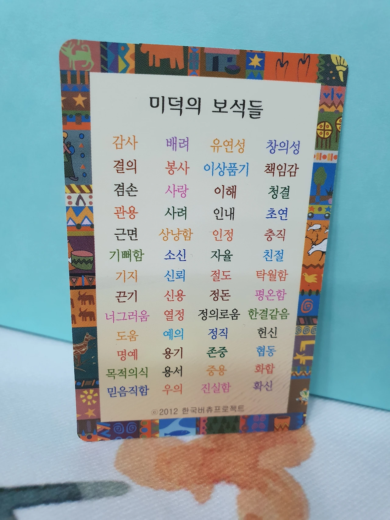 16살, 12살 한창 사춘기를 보내고 있는 딸들과의 시간을 든든히 지켜주는 건 바로 버츄프로젝트였다. 52개의 미덕과 5가지 전략으로 삶에 대한 태도를 알려주는 활동이다. 심리상담사로 일하는 내가 애타게 찾던 사막의 오아시스 같았다. 사람들은 마음의 상처를 치유하면서 회복이 되었지만, 어딘가 모를 한계가 느껴졌다. 존재를 신뢰하고 확신을 갖게 하는 무언가가 필요했었다. 사춘기 아이들, 마음이 아픈 사람들을 도울 수 있었던 것은 버츄프로젝트로 사람을 보는 시선이 달라졌기 때문이다. 나는 한 사람을 바라보는 가장 따듯한 시선이라고 말한다. 빛나고 필요한 것으로 바라보기.