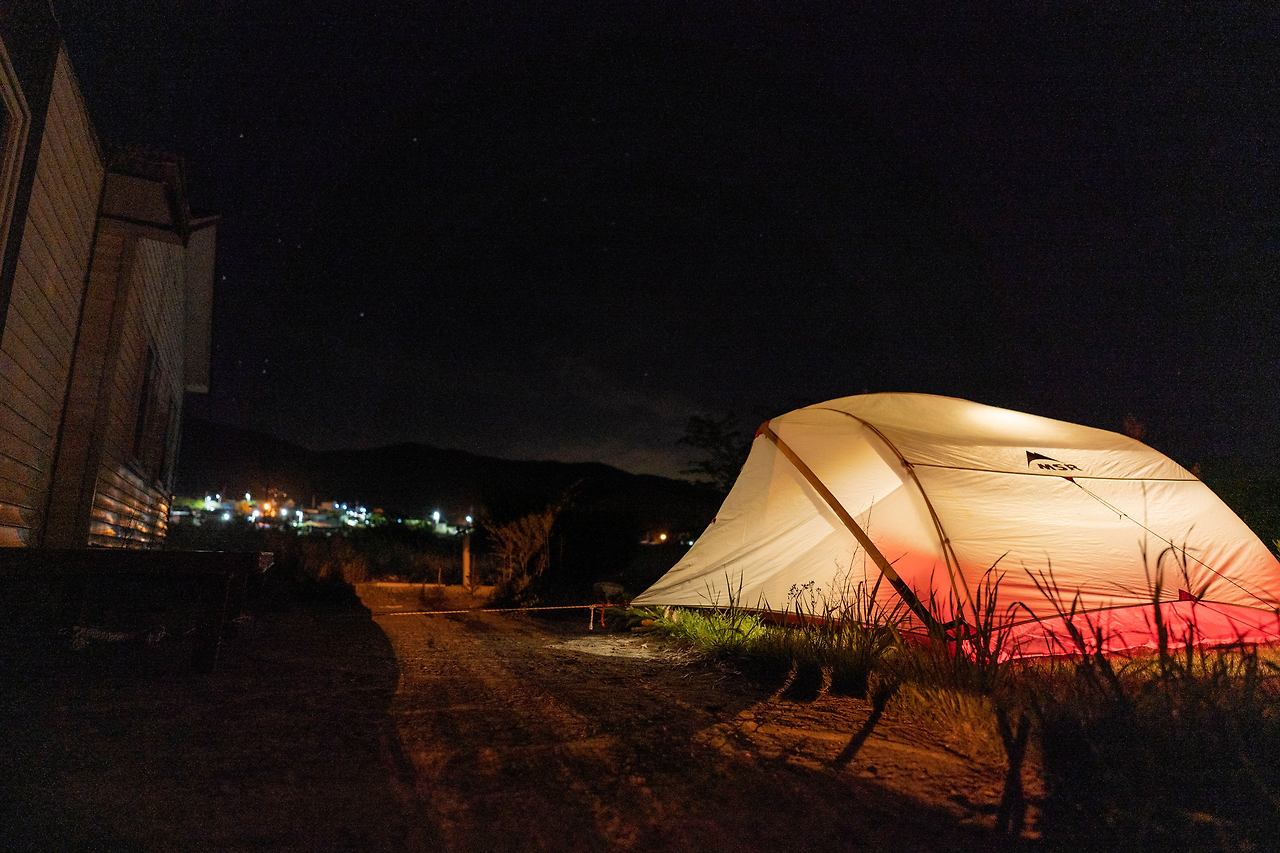 우리는 바람이 많이 부는 날 텐트가 무너지는 것도 경험했고 억수 같이 비가 오는 날에 비를 맞아 가며 또는 비를 피해 가며 불편함도 견뎠어.