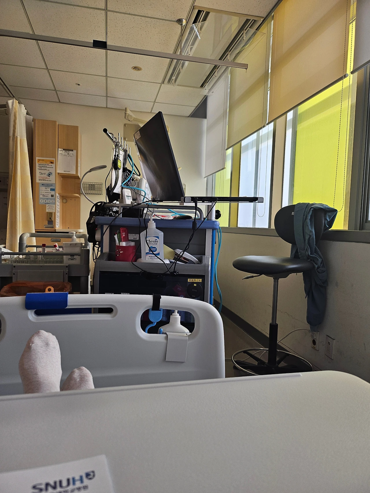 입원 수속을 밟고 간호간병 5인실로 입실, 처음 가본 5인실이었다. 내 자리는 우측 창가 쪽이고 바로 옆에 상주 간호사님이 있었다.