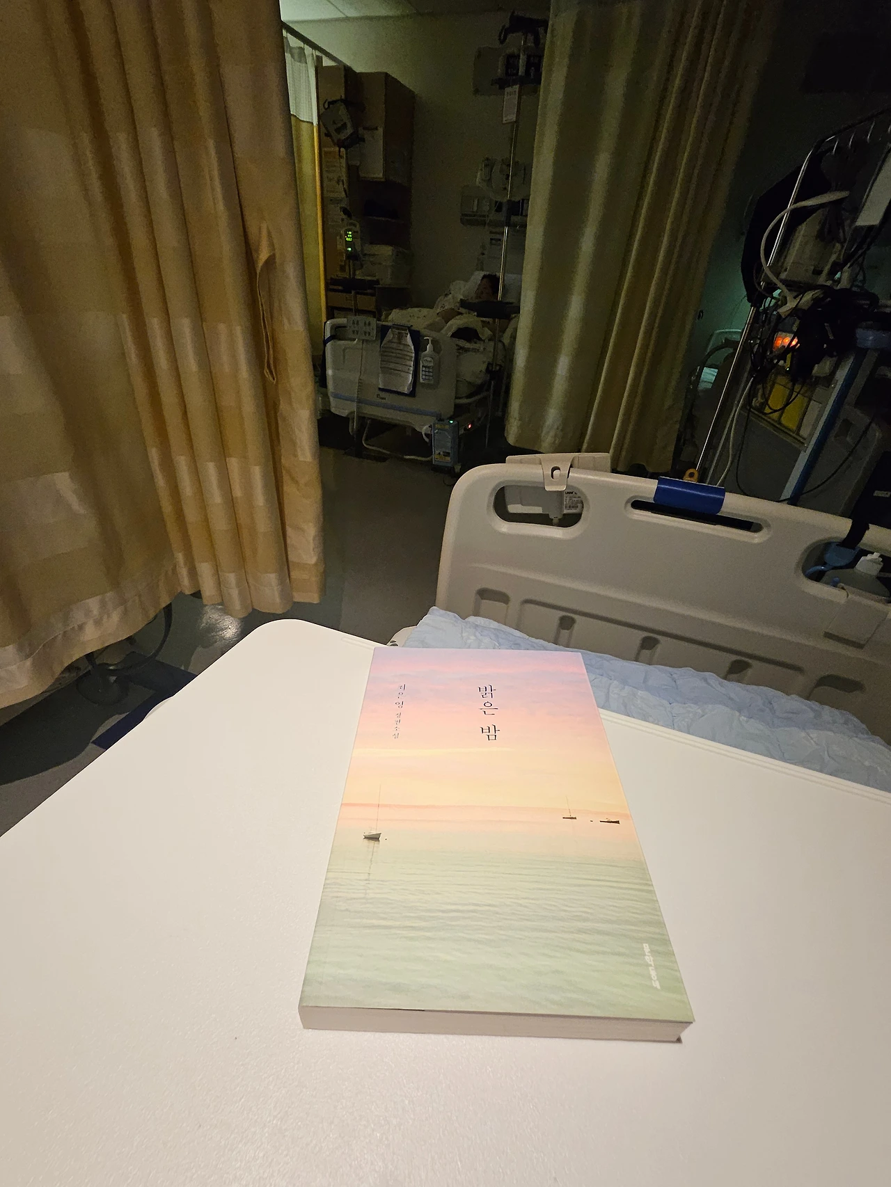 조무사 선생님은 바쁘더라도 창 밖의 붉은 해를 보라고 했다. 어둠이 짙은데 해가 붉다. 붉은 밤이다. 붉고 밝은 밤이다. 내일의 고통을 상상하면 마냥 밝지만은 않지만.