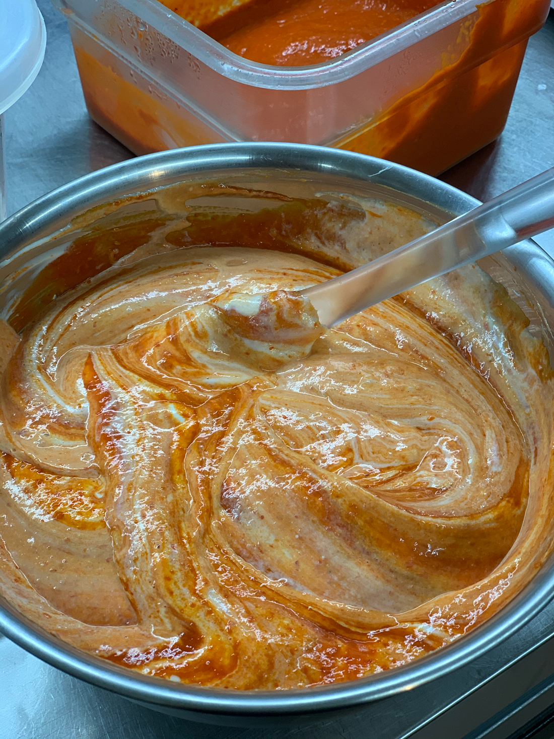 • 처음에 곱게 갈았을 때는 흐르는 질감이며, 냉장고에 1시간 이상 보관하면, 질감이 더 단단해지고, 맛이 고루 섞여 더 맛있습니다.