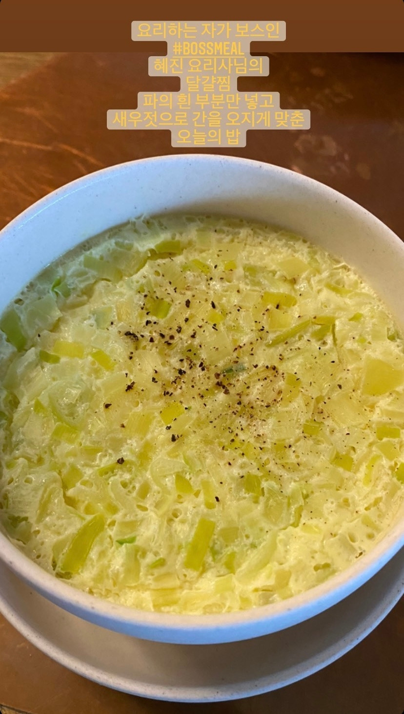9. 한식을 전공한 혜진 요리사님이 만든 계란찜은 대파의 흰 부분만을 넣고 새우젓으로 간을 맞춘, 오랜만에 만난 정갈한 계란찜이었어요. 계란찜을 해 본 사람들은 적절한 익힘과 수분을 간직한 보드라운 계란찜을 만들기가 쉽지 않다는 것을 잘 알지요.
