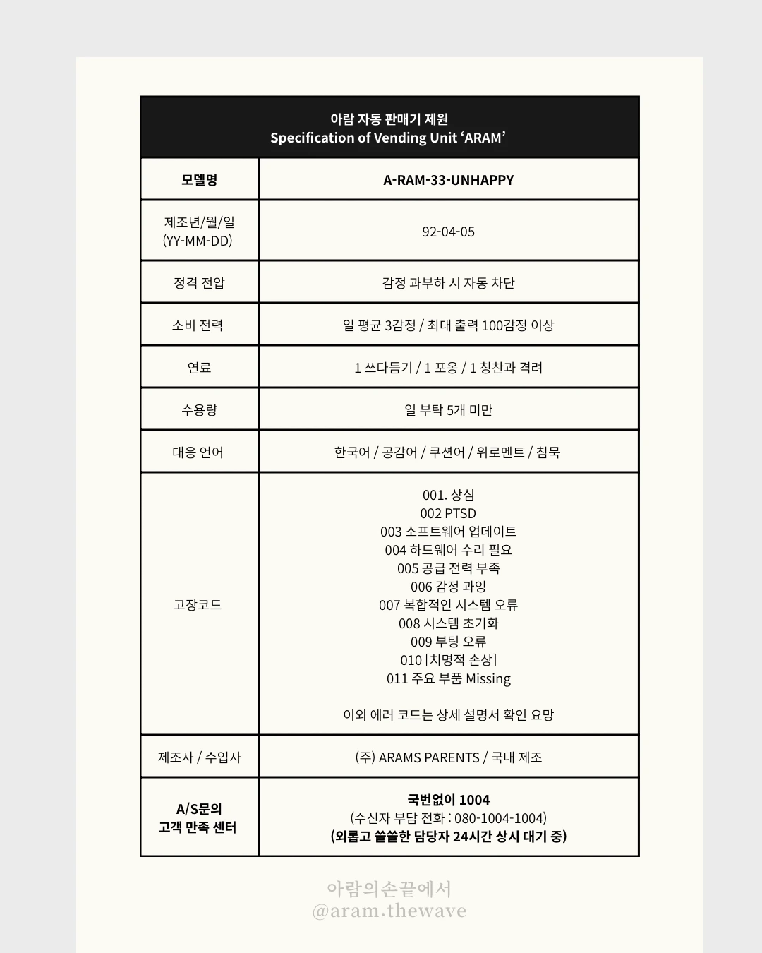 자동판매기 ‘아람 ARAM' 제품 사용 설명서 및 제원