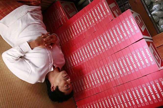 마치 정말로 이걸 누르는 사람이 있을 줄은 몰랐다는 표정으로 그를 쳐다보곤 그녀는 이내 안심한 듯이 숨을 뱉는다. 일어난 그녀는 그가 정교하게 쌓인 피자 박스 중에 거꾸로 꽂혀 있는 부분을 지적한다. 그러곤 그의 집을 보며