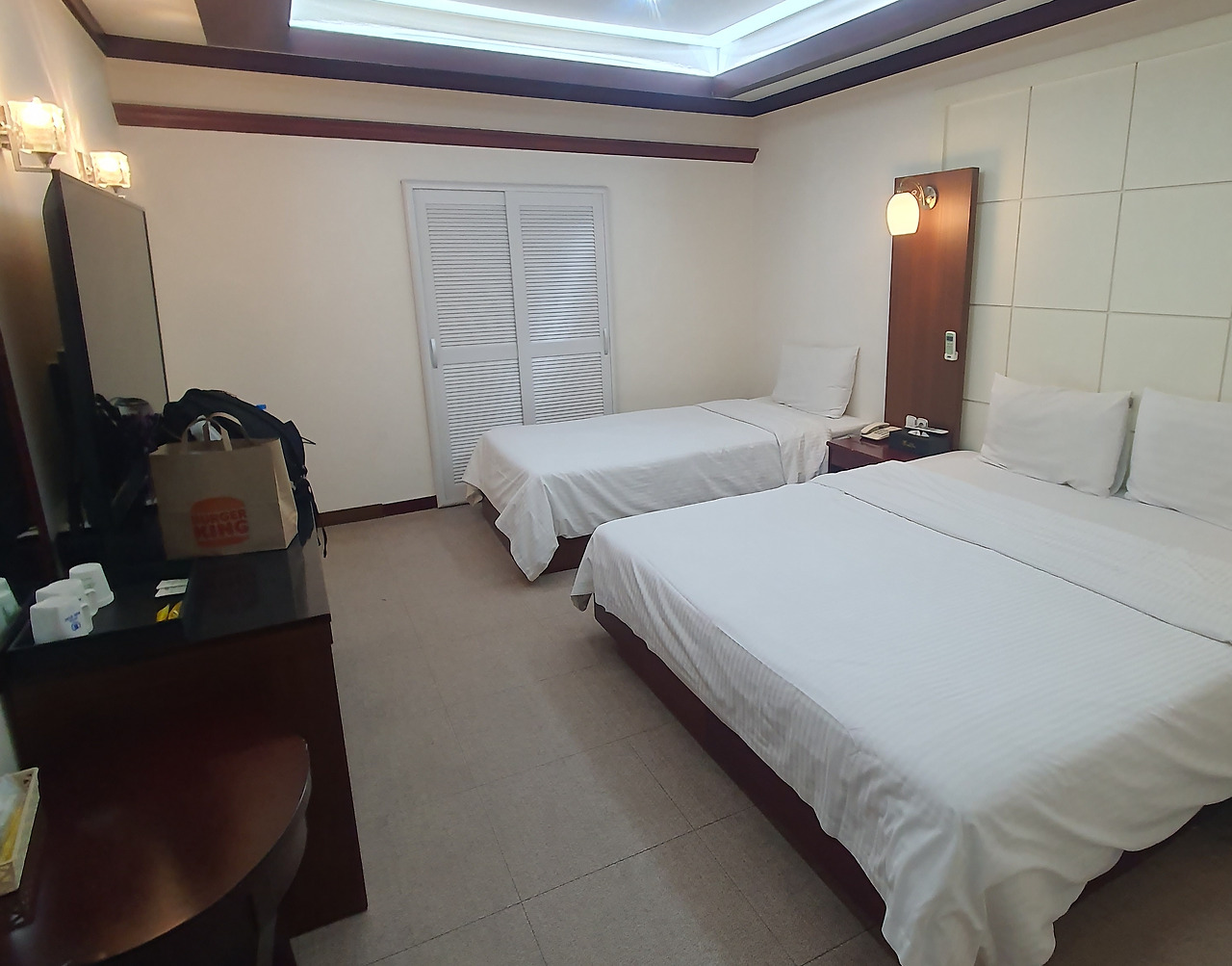 잠깐 머물고 가는 숙소라 4만 원대 후반에 침대두 개가 있는 트윈으로 결정했다. 공항 근처에서 머물고 택시 타고 이동하면 약 7만 원가량 나오는데 둘이 나누면 3.5만 이기 때문에 혼자 가는 것보다는 부담이 덜 간다.