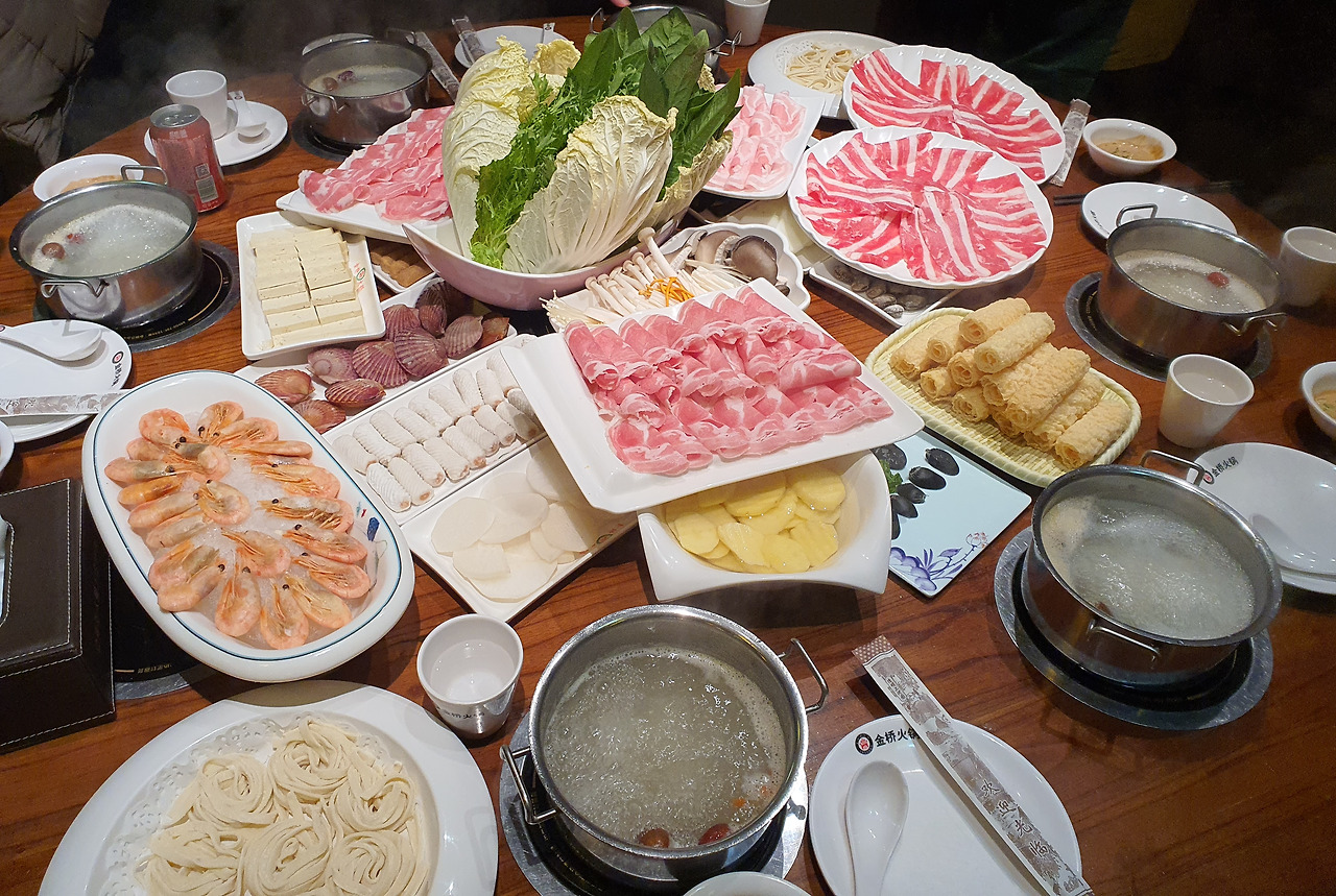 아직도 기억에 남는 최고의 샤브샤브 무제한 저녁식사 돼지고기 양고기 소고기 해산물을 개인 인덕션 냄비에 육수를 끓여 두고 야채와 손칼국수 고기를 넣어 마음껏 먹을 수 있는 최고의 만찬이다. 10$를 추가해야 무제한인데 기본은 양이 한두 접시 밖에 안 나와서 다들 금방 식사를 끝낸 듯했다. 이것을 먹을 때 가이드가 연태고량주 3잔 정도를 서비스로 줬는데 아주 좋은 술로 주셨는지 조금만 마셔도 기분이 좋아졌다. 다음코스가 야시장 투어라 무제한 신청 안 한 사람이 많았는데 결론은 야시장이 너무 별로여서 여기서 뽕을 뽑은 우리는 선택에 대해 대 성공이다.