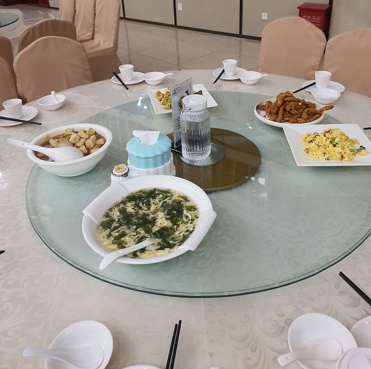 중식도 현지식이었다. 이번에 간 중식당은 웨딩홀 같은 컨벤션인데 우리들만 들어가 음식을 먹는 방식이었다 우리만을 위해 운영되는 식당이라 감사하기도 조금 부담되기도 했다. 이 구조가 어떻게 운영되는지는 모르겠으나 이 식당은 정말 우리를 받으려고 한시만 운영되는 것일 수도 있다는 생각이 들었다. 건물도 죽어있고 직원들도 너무 적었기 때문이다.