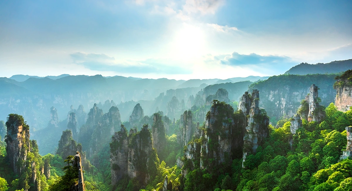 볼거리: 웅장한 산악 풍경, 황석좡 국립공원, 아바타 영화의 영감이 된 기둥 모양의 산봉우리들.