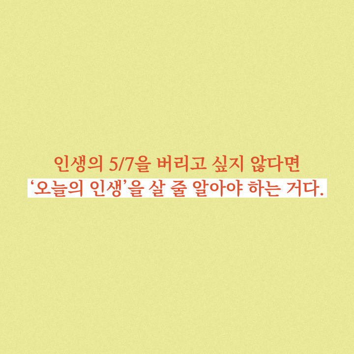 삶에는 그냥 흘러가는 시간도 있다. 물론 기다리거나 견뎌야 하는 시간도 있다. 중요한 것은 그게 결코 버리는 시간이 아니라는 것을 깨닫는 일이다.