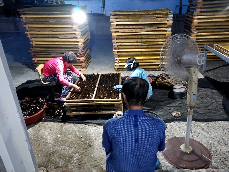 오늘, 그동안 날씨 때문에, 물때 때문에 못하던 미역작업 다시 시작하다.