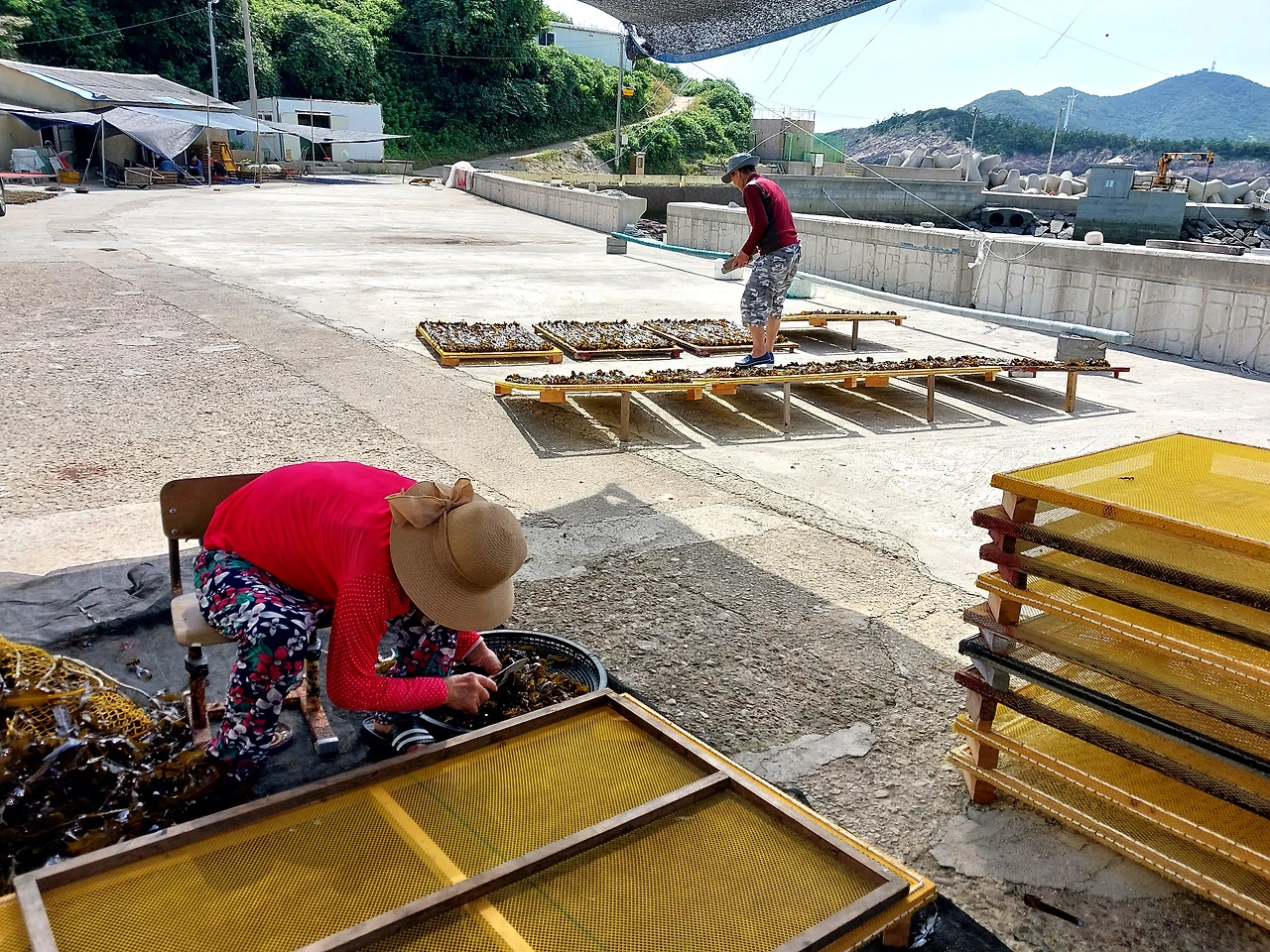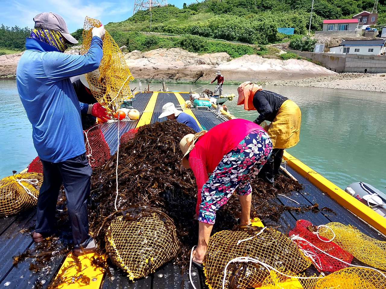 채취해 온 미역을 가구 수대로 나누고... 미역의 형태를 잡는데 우리는 이걸 미역을 넌다고 표현한다.