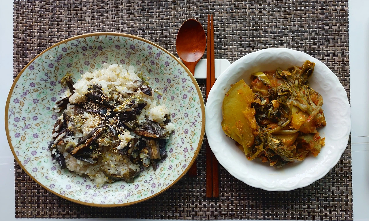 점심은 꾸덕하게 말린 가지를 넣어 가지밥으로. 그리고 지난 겨울에 여름용으로 담은 무청김치가 좀 짜서 호박 넣어 지졌다. 요즘 호박이 풍년이어서 김치찌개에도 넣는데... 의외로 조합이 좋다.