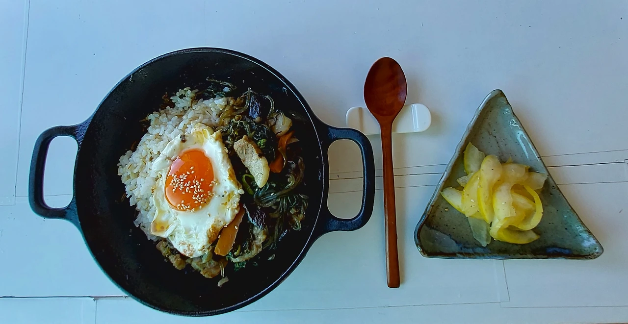점심은 전전날, 생신상 차려 드리고 남은 잡채를 데워서 참외장아찌와 함께.