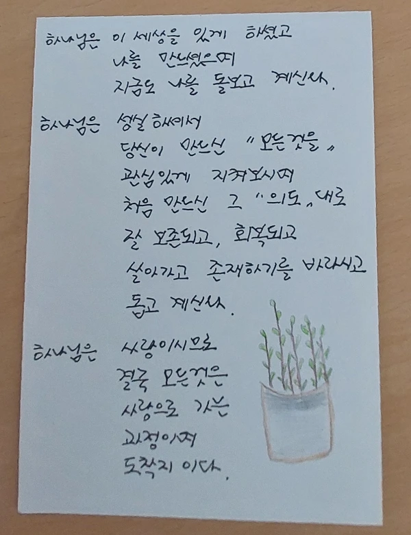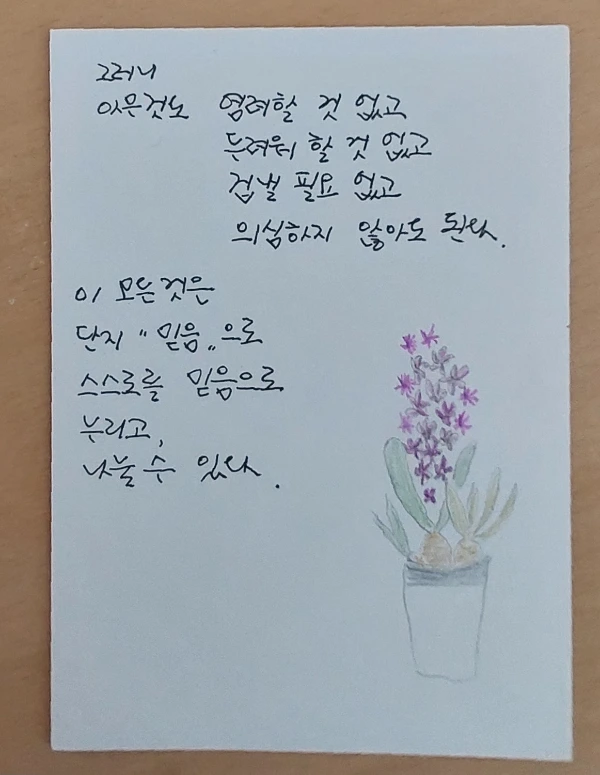 예전에 써서 책상 위에 붙여놓은 글을 다시 읽어봅니다.