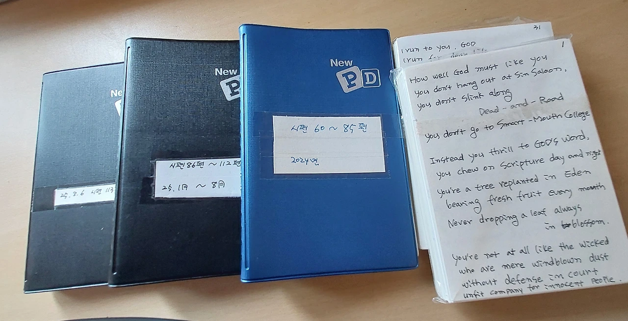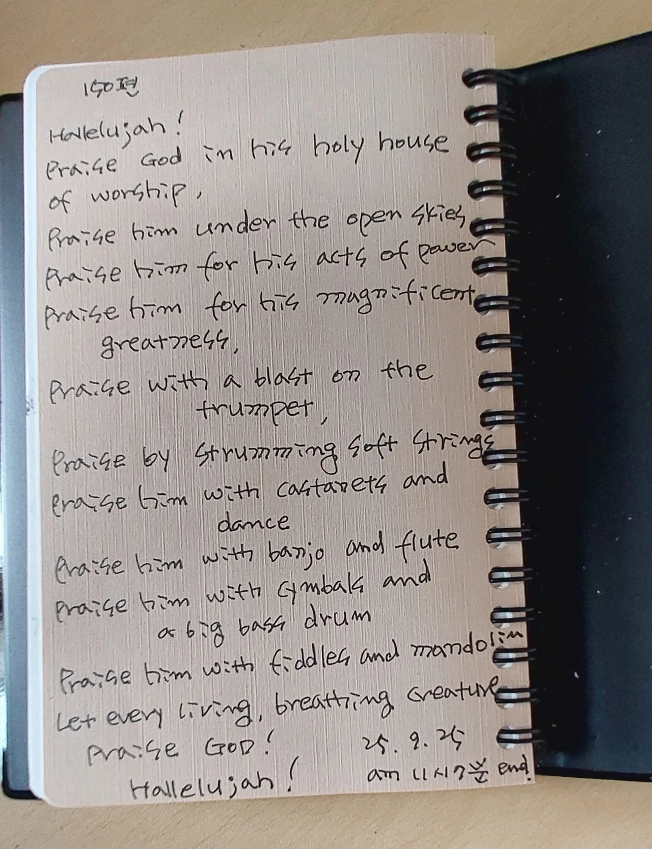오늘은 그동안 쓰던 시편 영어쓰기를 모두 마쳤습니다.