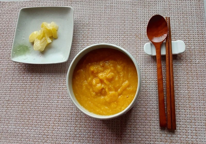 아침은 호박죽과 참외장아찌.