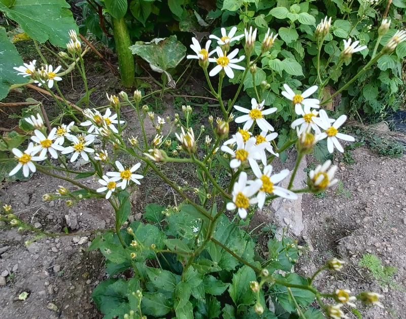 텃밭에 취꽃이다. 미처 손을 못 대고 있는 부추, 취, 깻잎... 시장도 없고, 마트도 없지만 사방이 먹거리 천지다.
