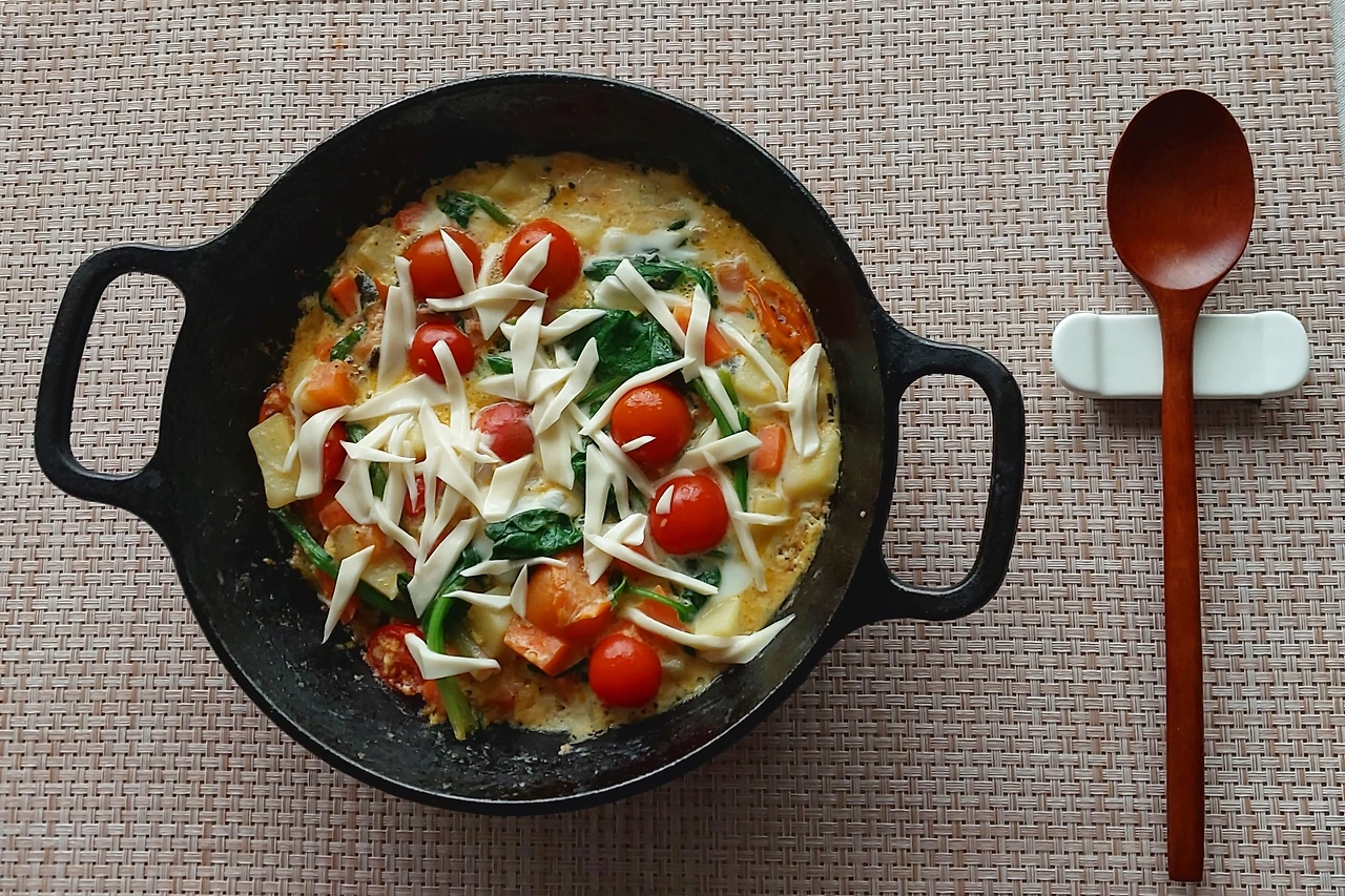 아침은 시금치를 어떻게 먹어볼까 하다가 냉장고에 있는 재료들로 대충 시금치 프리타타를 만들었다.