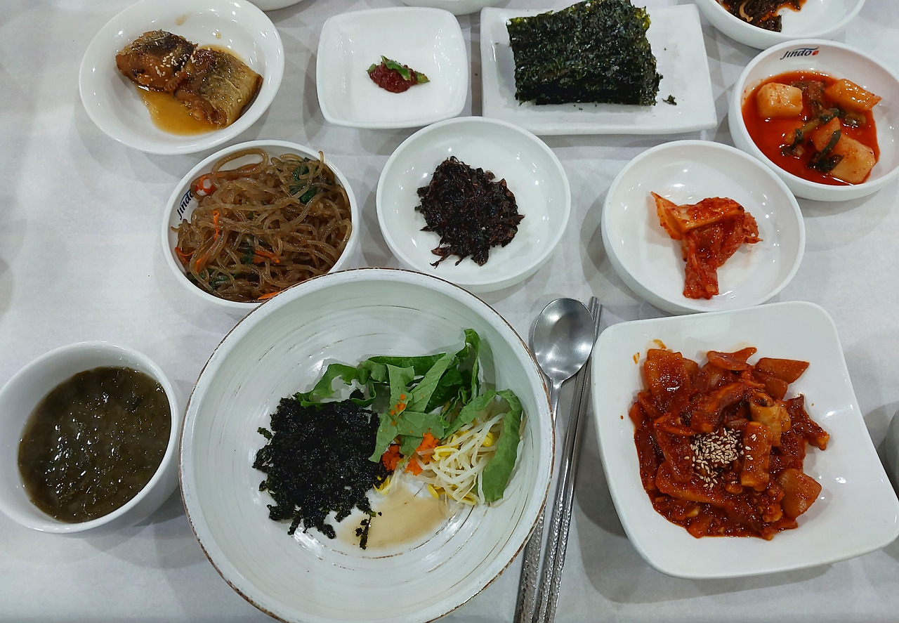 진도에 오면 가끔 가는 <신호등>에서 낙지 비빔밥으로.