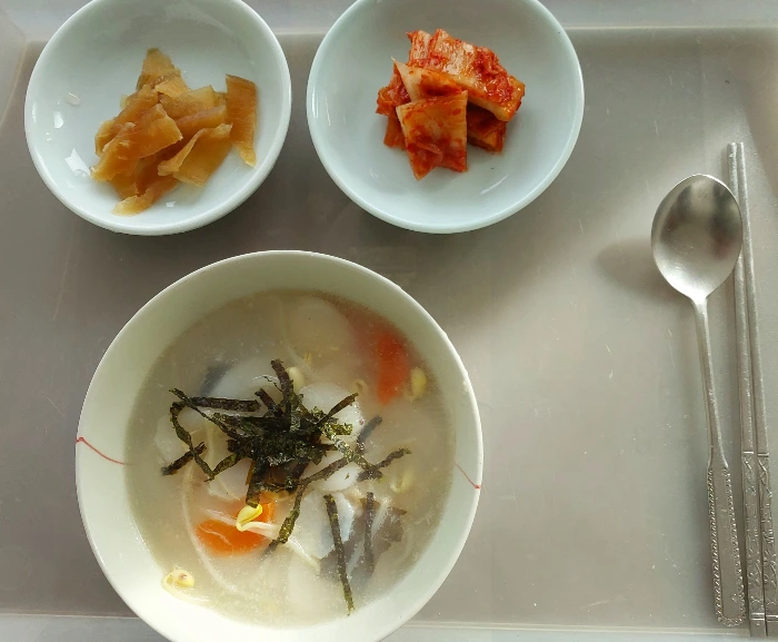 아침은 다시마와 바지락 넣고 끓이다가 떡국과 콩나물 한 줌 넣고 소금과 참기름으로 간.