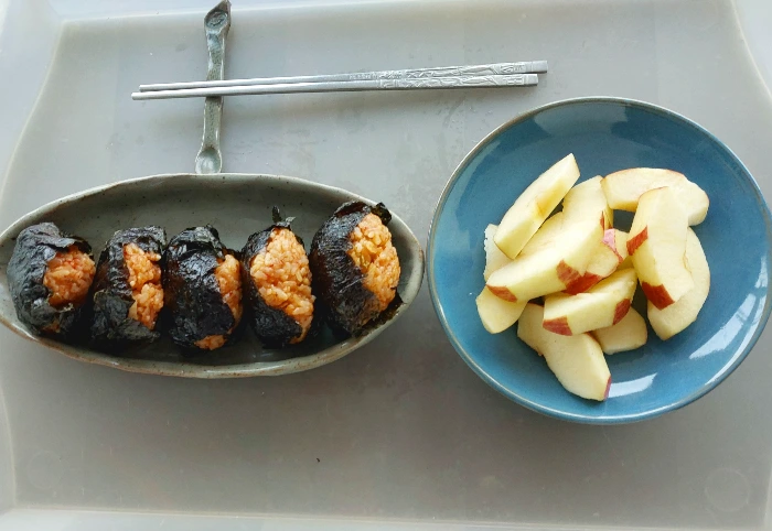 점심은 어제 남은 밥, 김치 넣고 볶아서 김으로 둘렀다. 삼각으로 해 볼까 했는데 검색하기 귀찮아서 그냥...