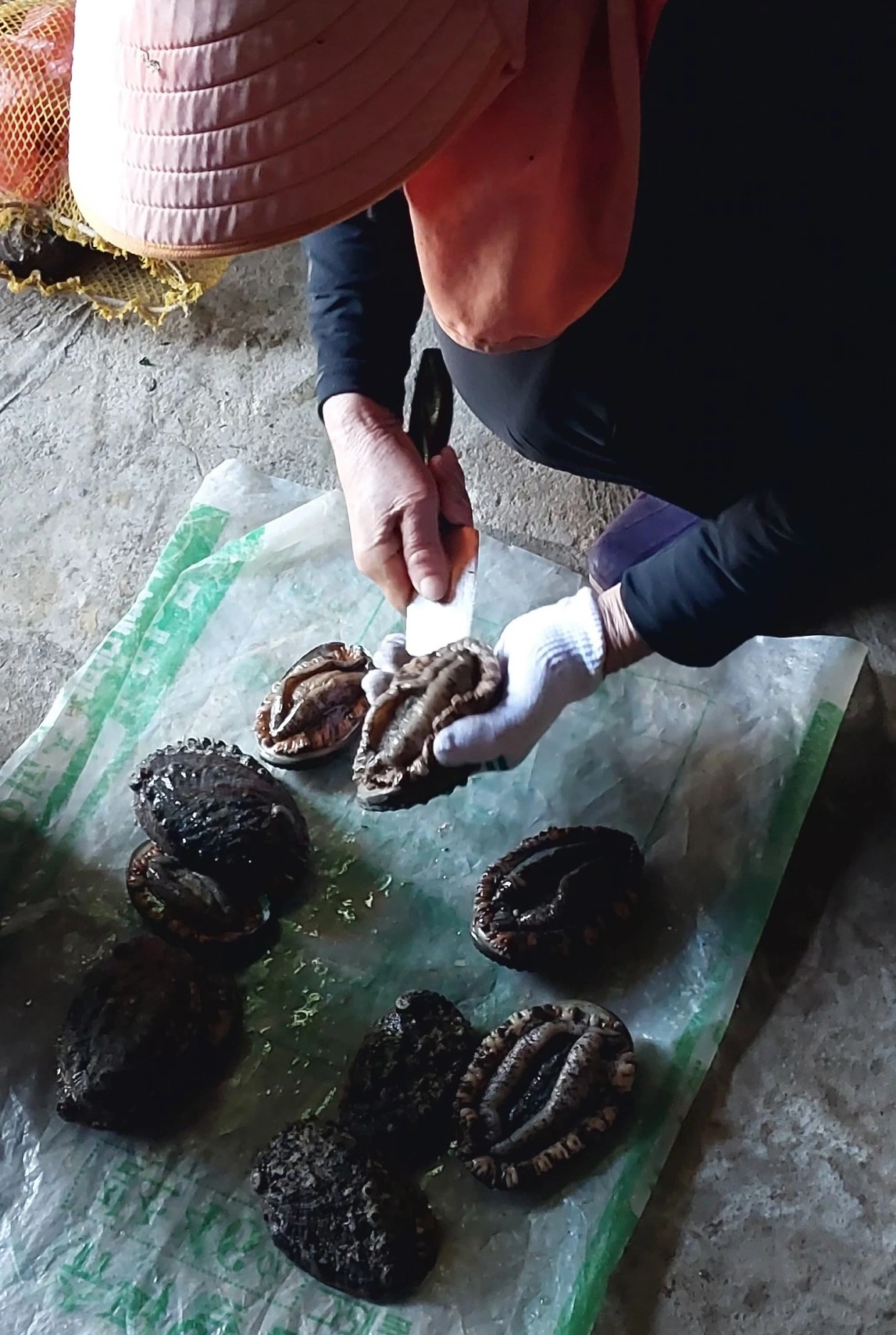 옆집에서 전복 손질 중이심. 물이 많이 빠지면 잡을 수 있다는데 물에 들어가기 춥지 않냐고 물으니 아니라고, 집에 가만히 있으면 더 춥다고 하심. (그래서 내가 추운가???) 돔은 윗집에서 낚시 다녀오시면서 한 마리 주신 것.