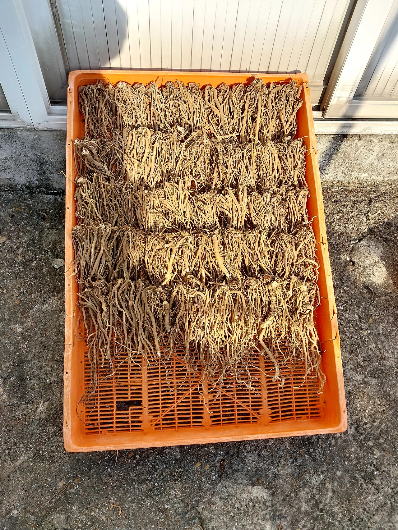우슬뿌리를 말리는 중, 캐고, 씻고 말려서 약재상에 갖다 주신다.